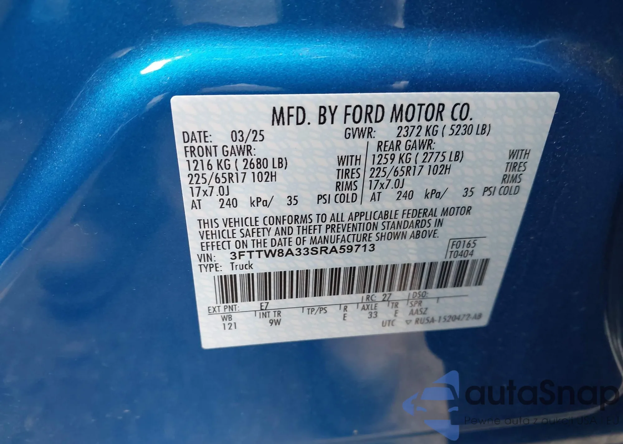 • VIN 3FTTW8A33SRA59713