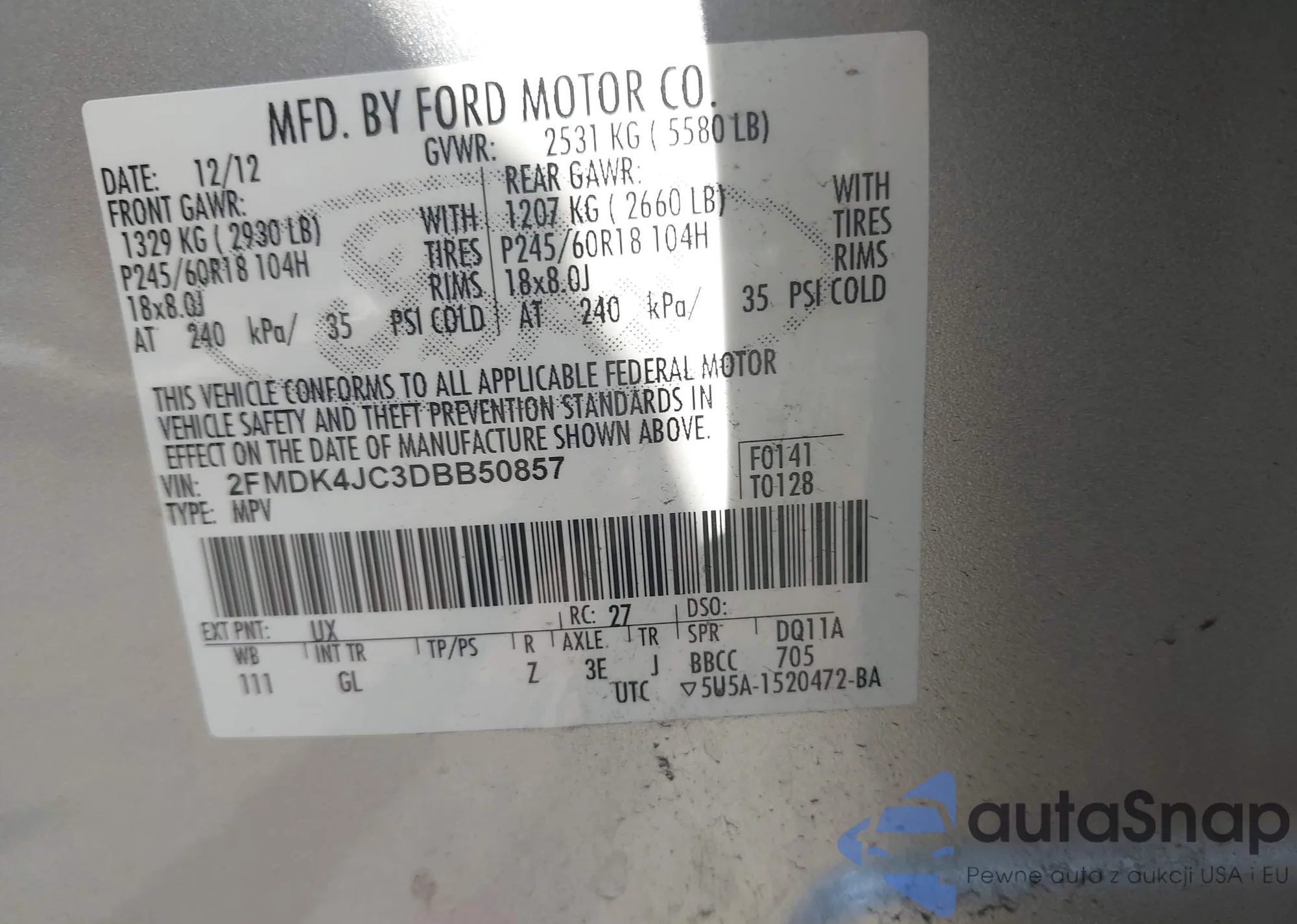 LOT: 42751758 VIN: 2FMDK4JC3DBB50857