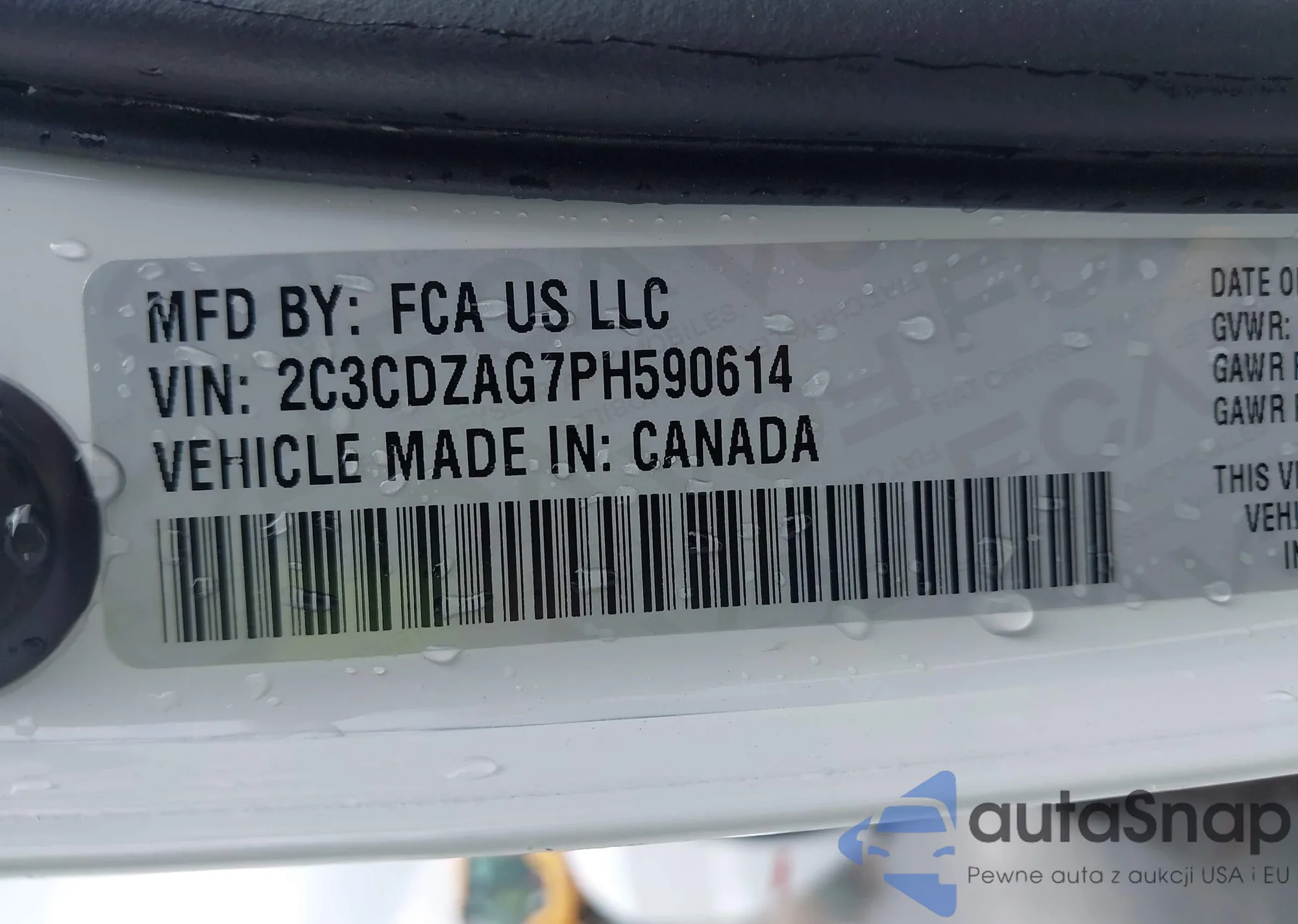 LOT: 42930851 VIN: 2C3CDZAG7PH590614