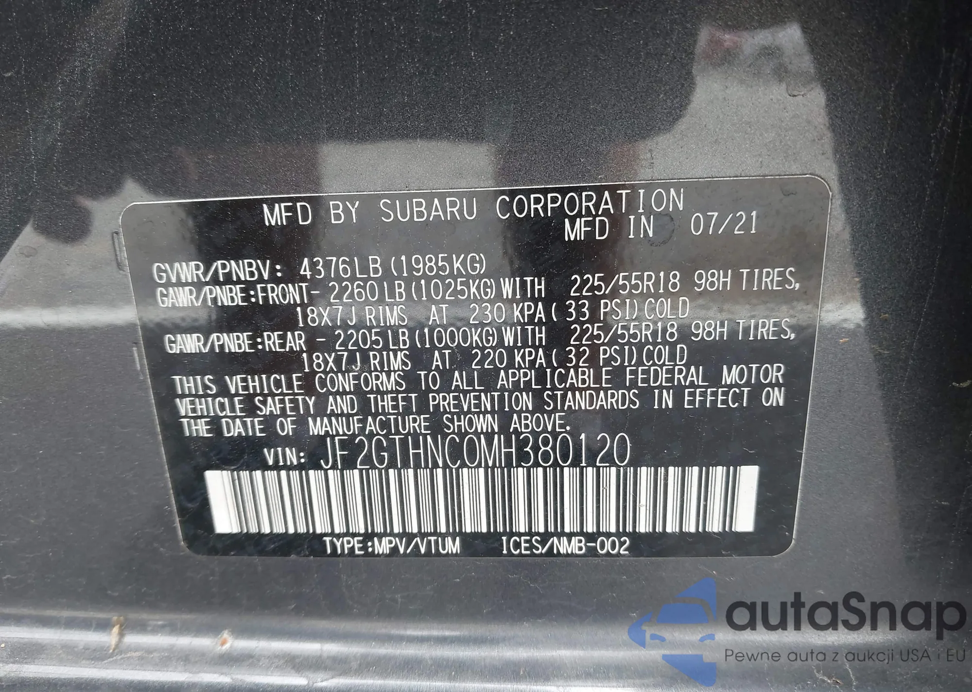 • VIN JF2GPAKC0DH848928