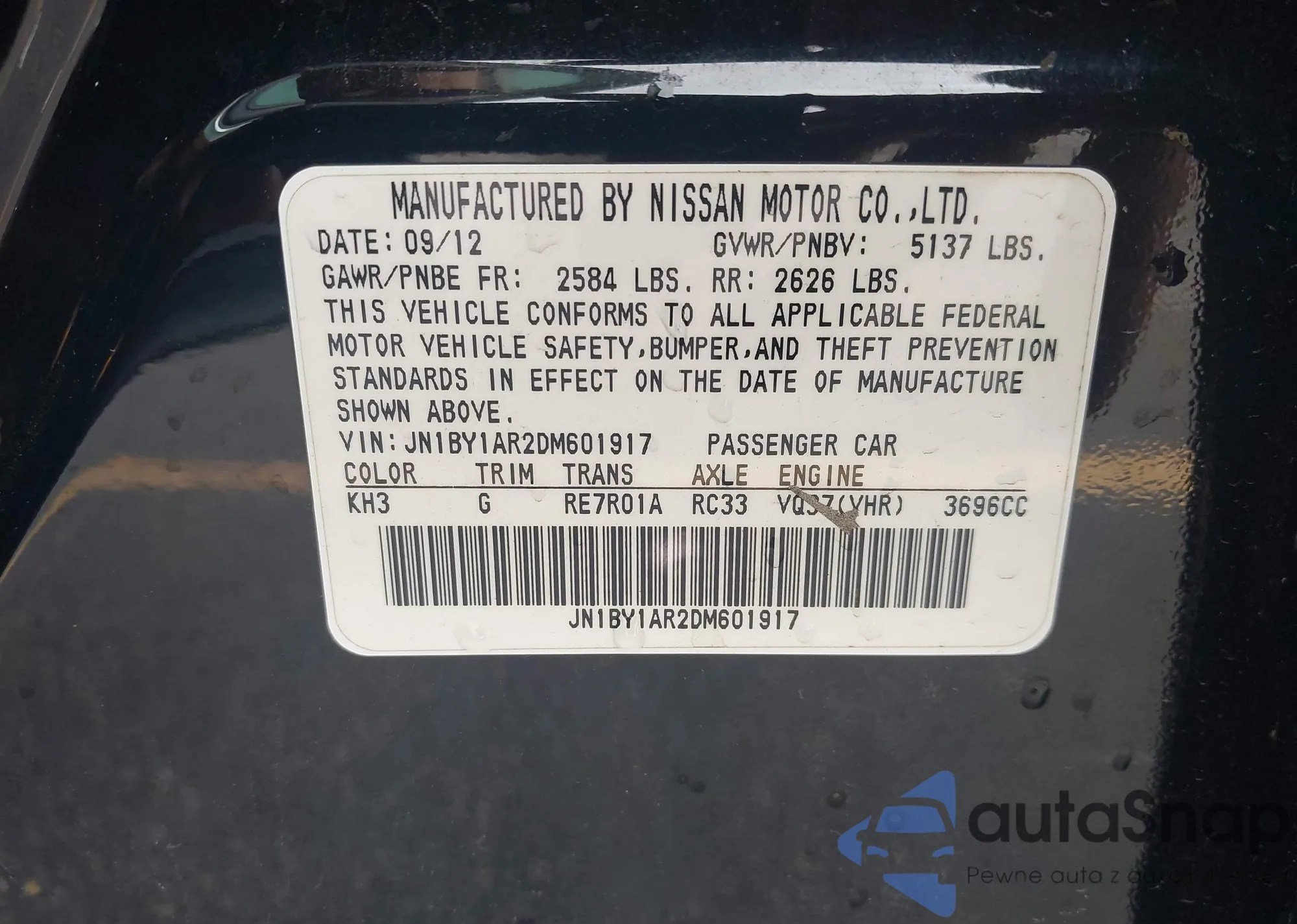 LOT: 42955420 VIN: JN1BY1AR2DM601917