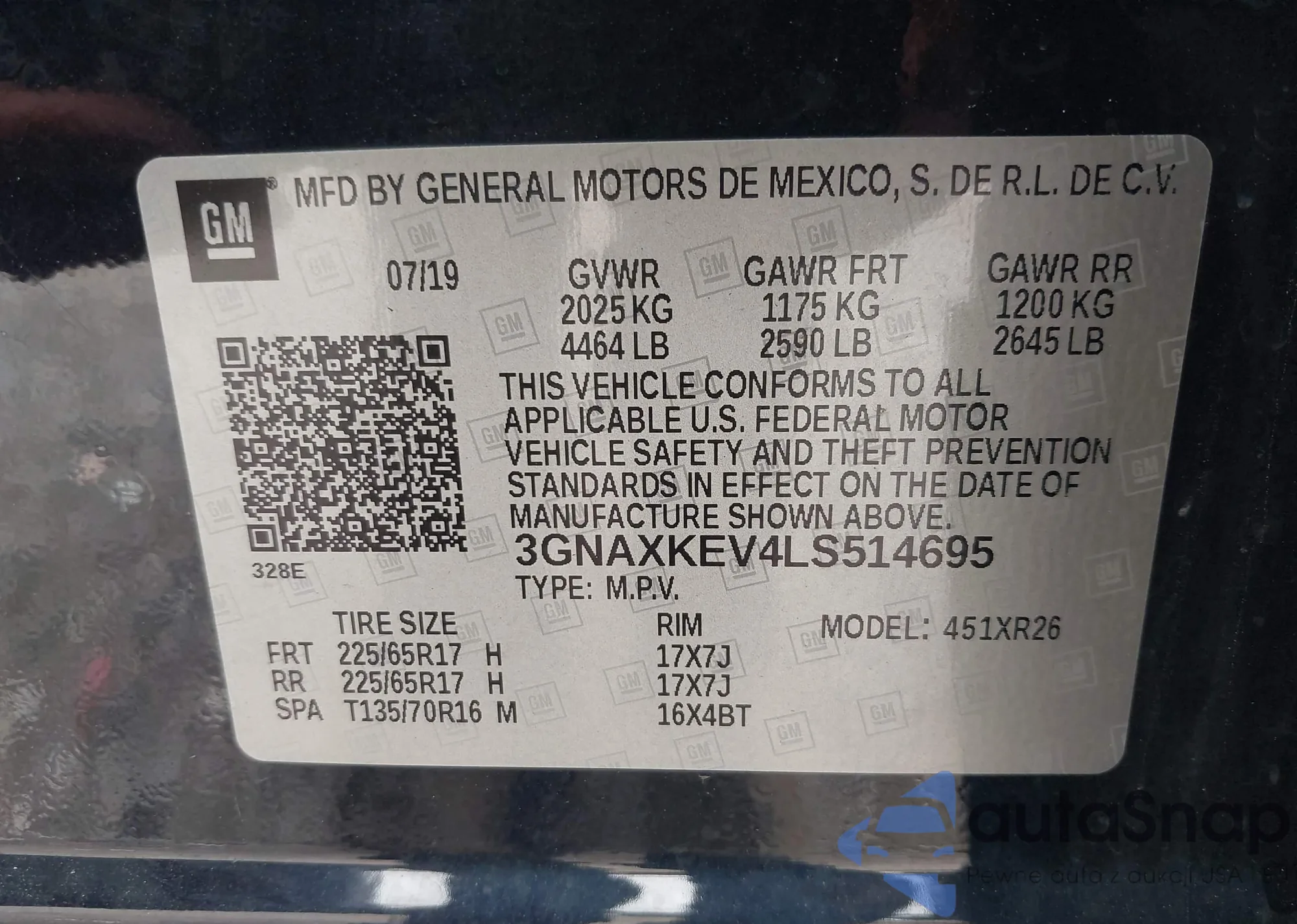 LOT: 43031740 VIN: 3GNAXKEV4LS514695