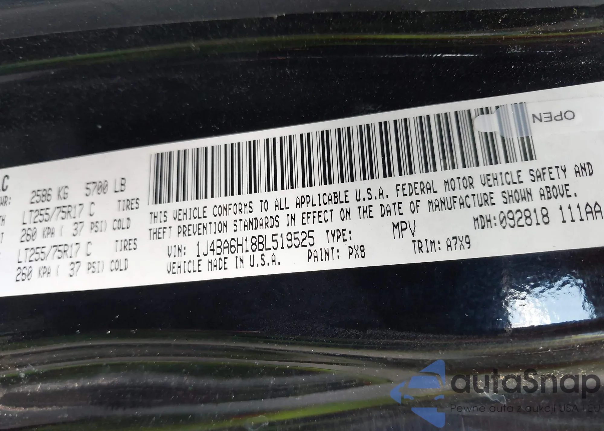 • VIN 1J4BA6H18BL519525