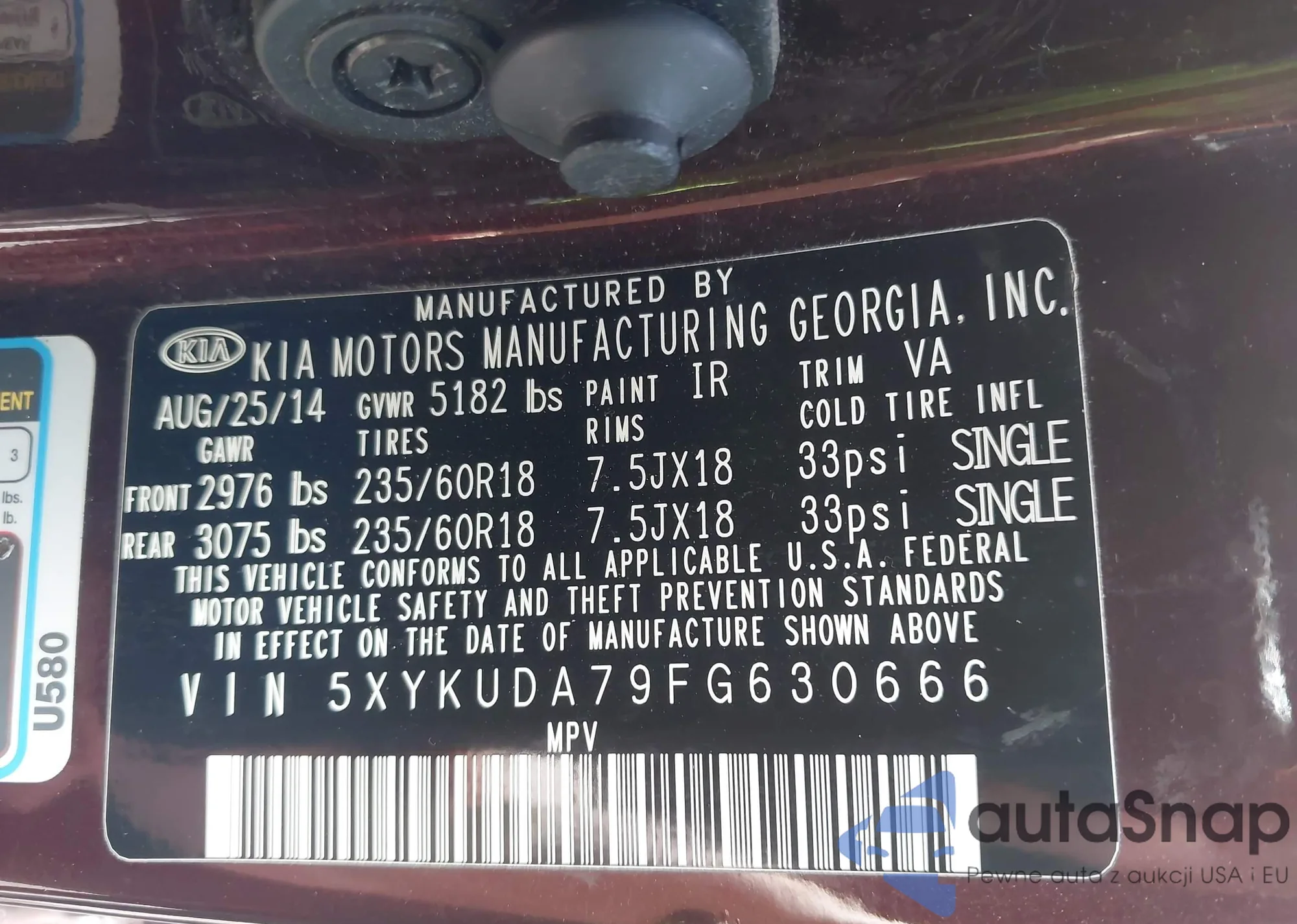 • VIN 5XYKUDA79FG630666