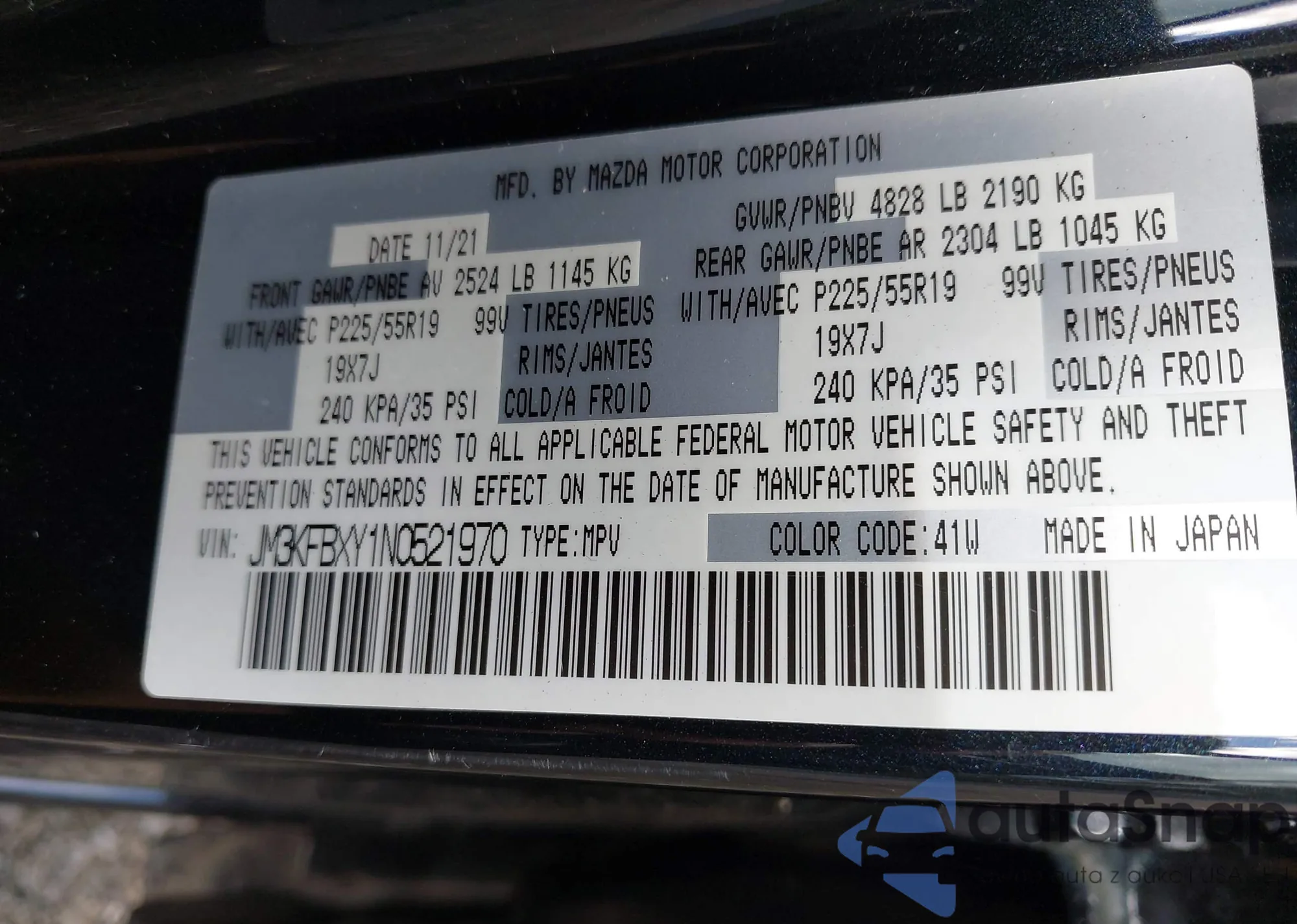 LOT: 43087107 VIN: JM3KFBXY1N0521970