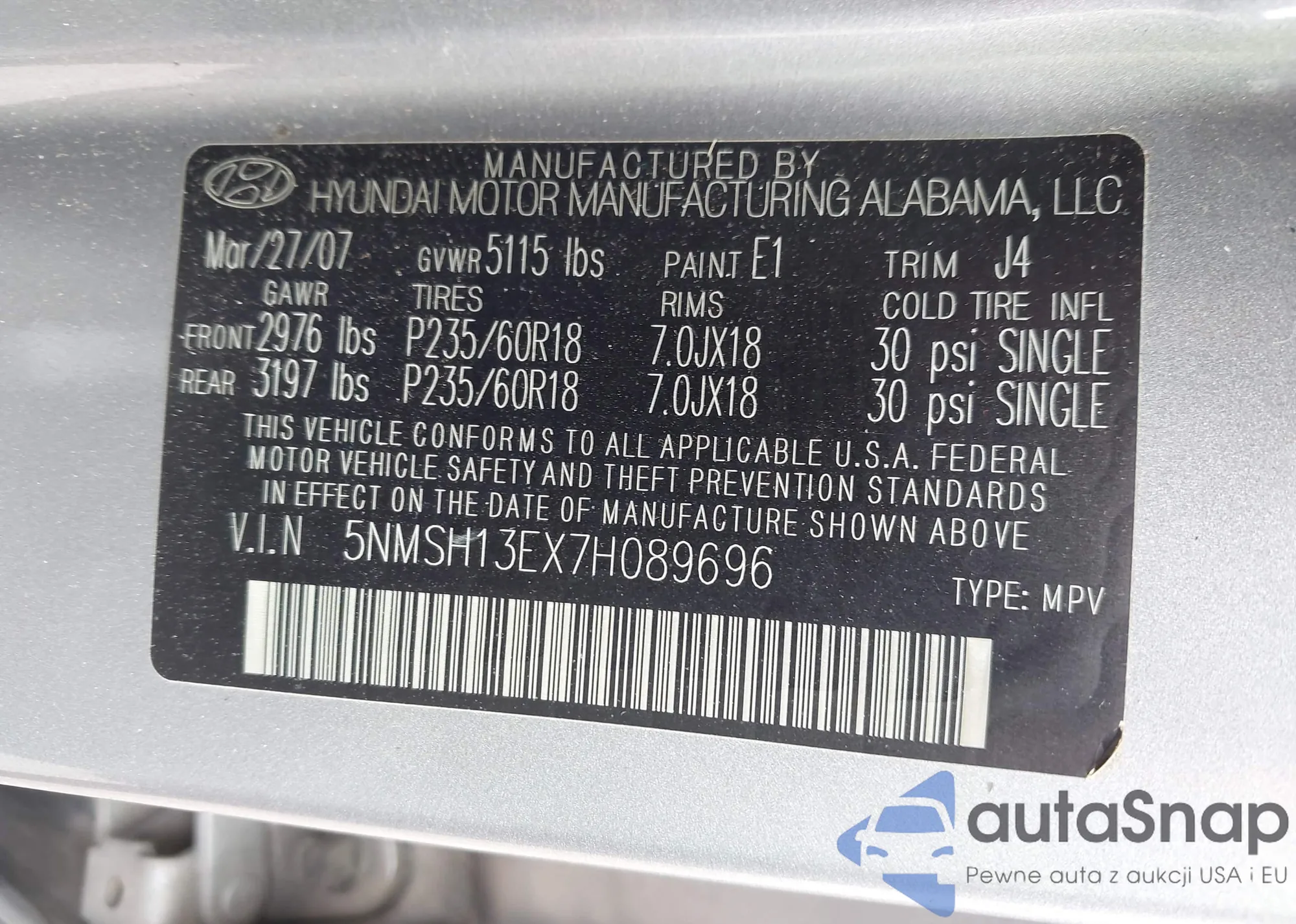 LOT: 42969477 VIN: KMHDU46D58U569286