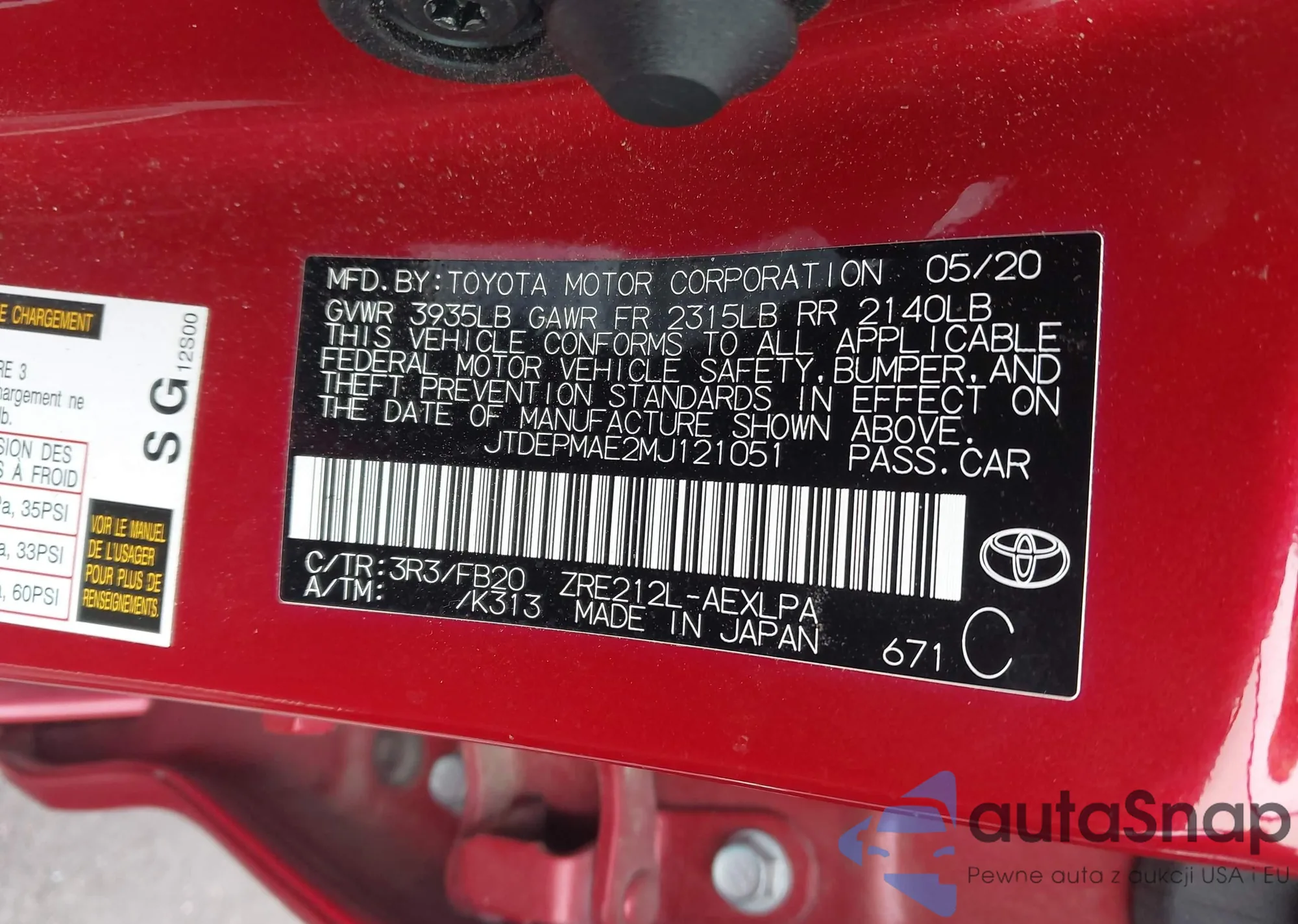 LOT: 42858145 VIN: 2T1BR18E5WC051495