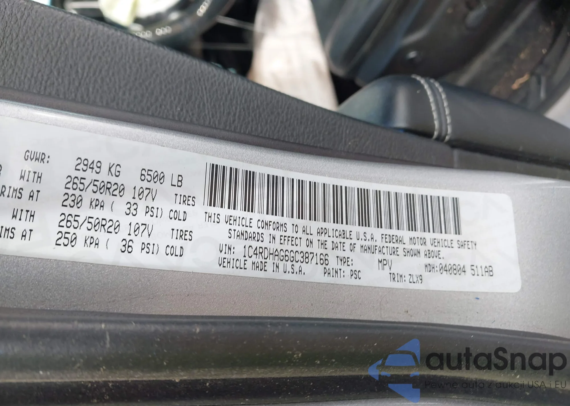 • VIN 1C4RDHAG6GC387166