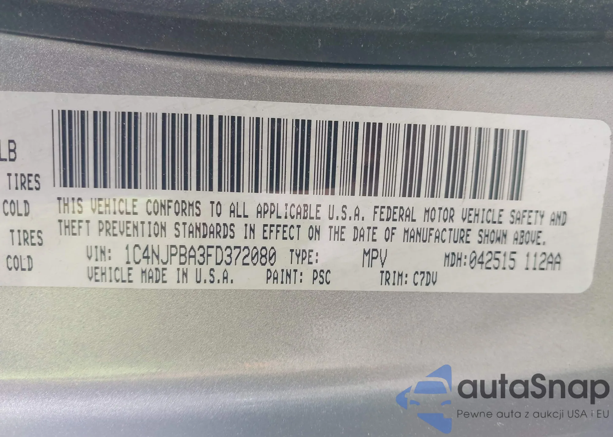 • VIN 1C4NJPBA3FD372080