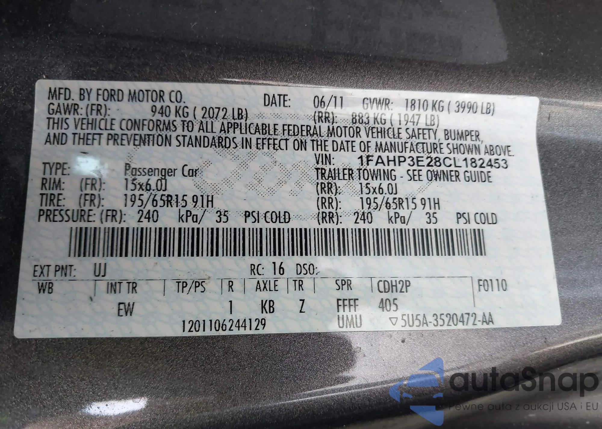 • VIN 1FAHP3E28CL182453