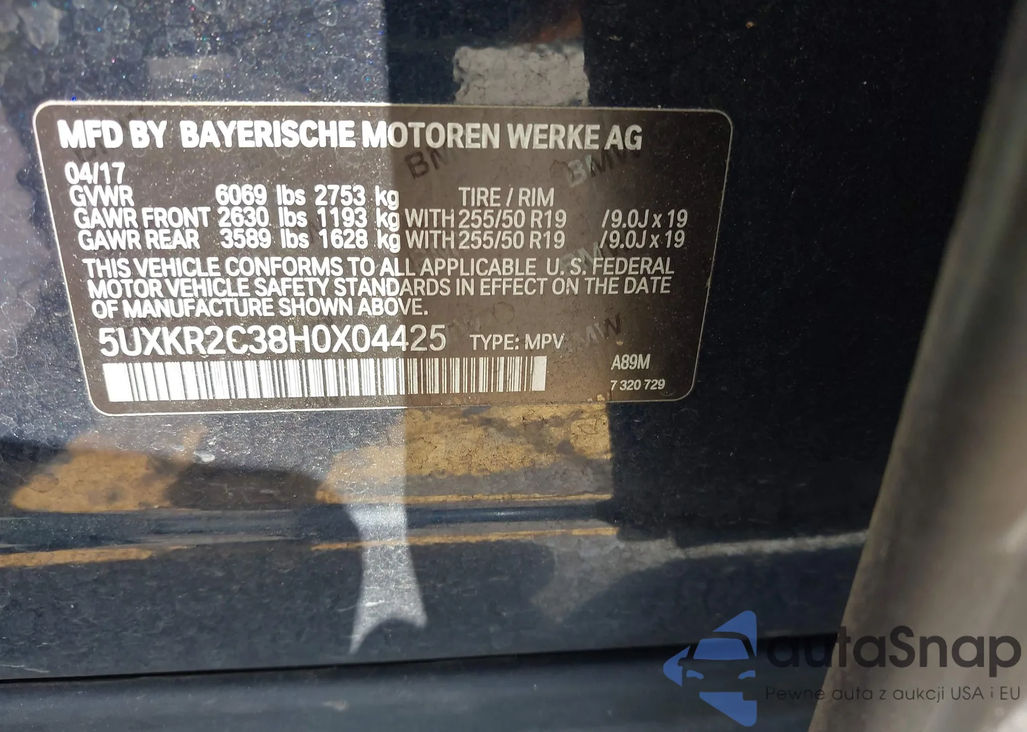 • VIN 5UXKR2C38H0X04425
