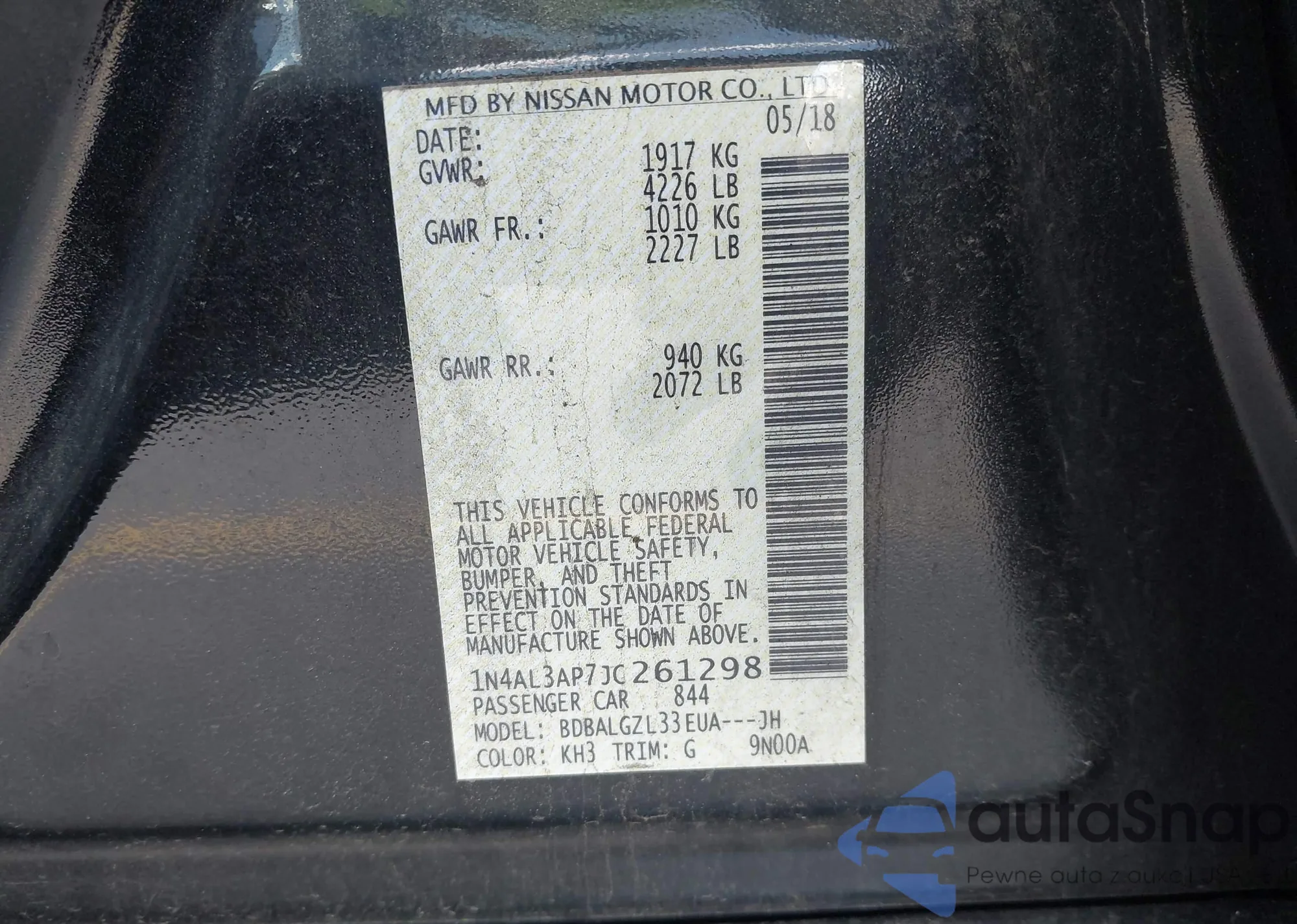 LOT: 43187689 VIN: 1N4AL3AP7JC261298