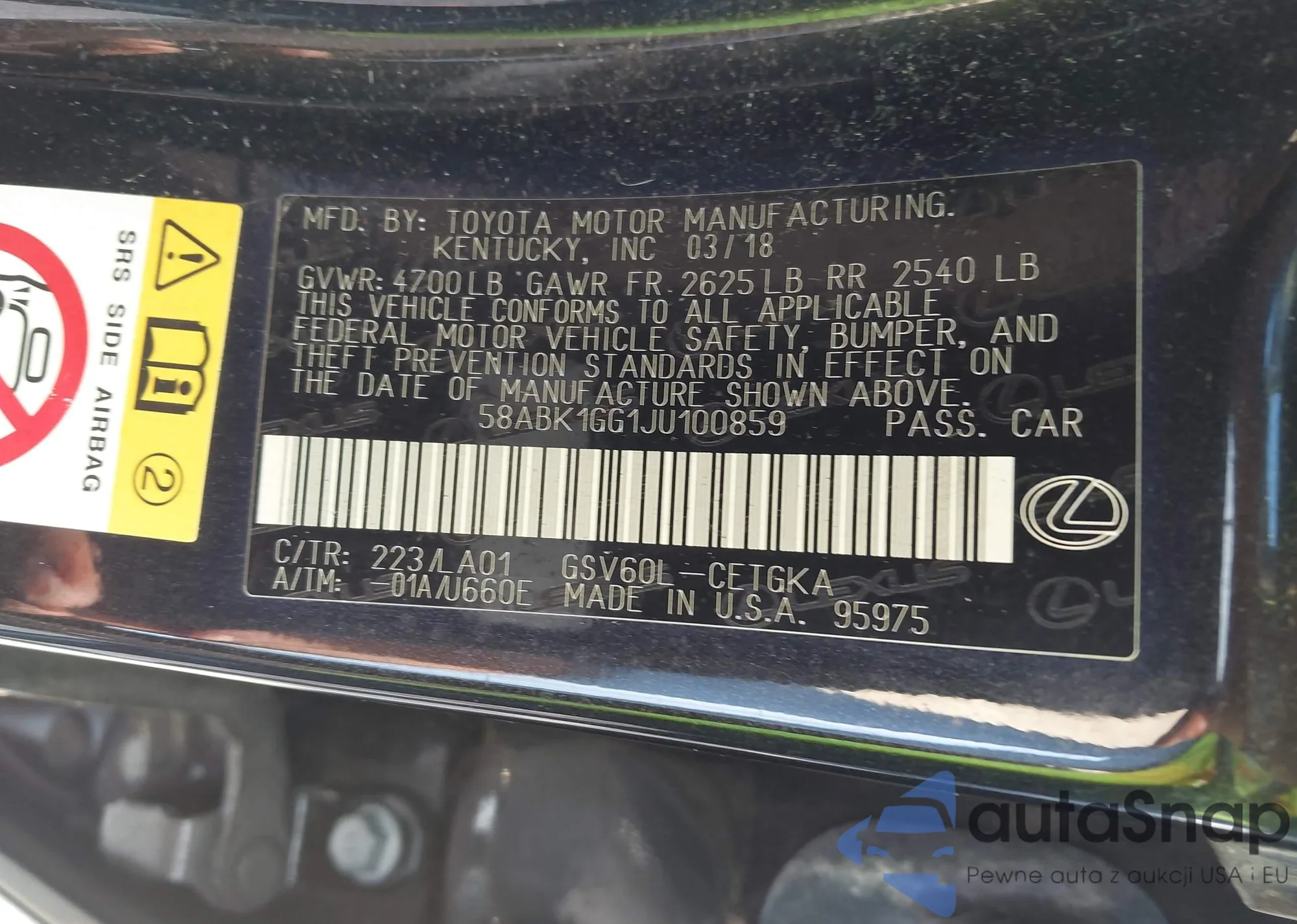 • VIN 58ABK1GG1JU100859