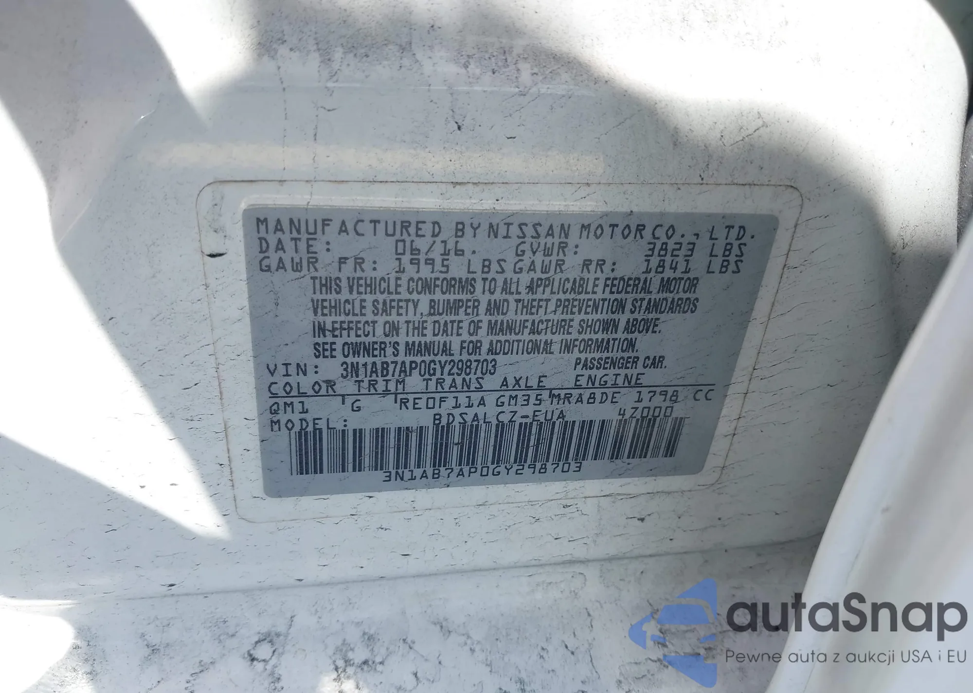 • VIN 3N1AB7AP0GY298703