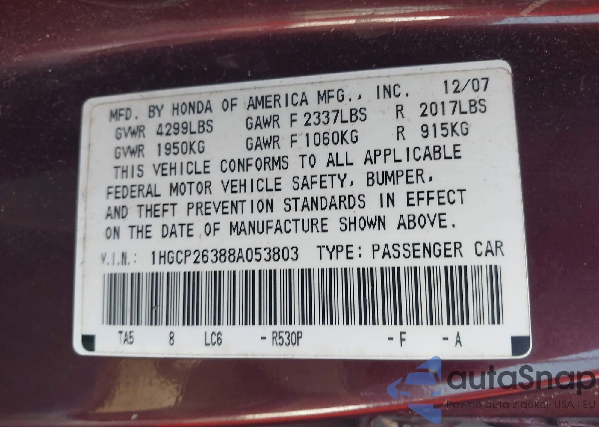 • VIN 5J6RE3H79BL054095