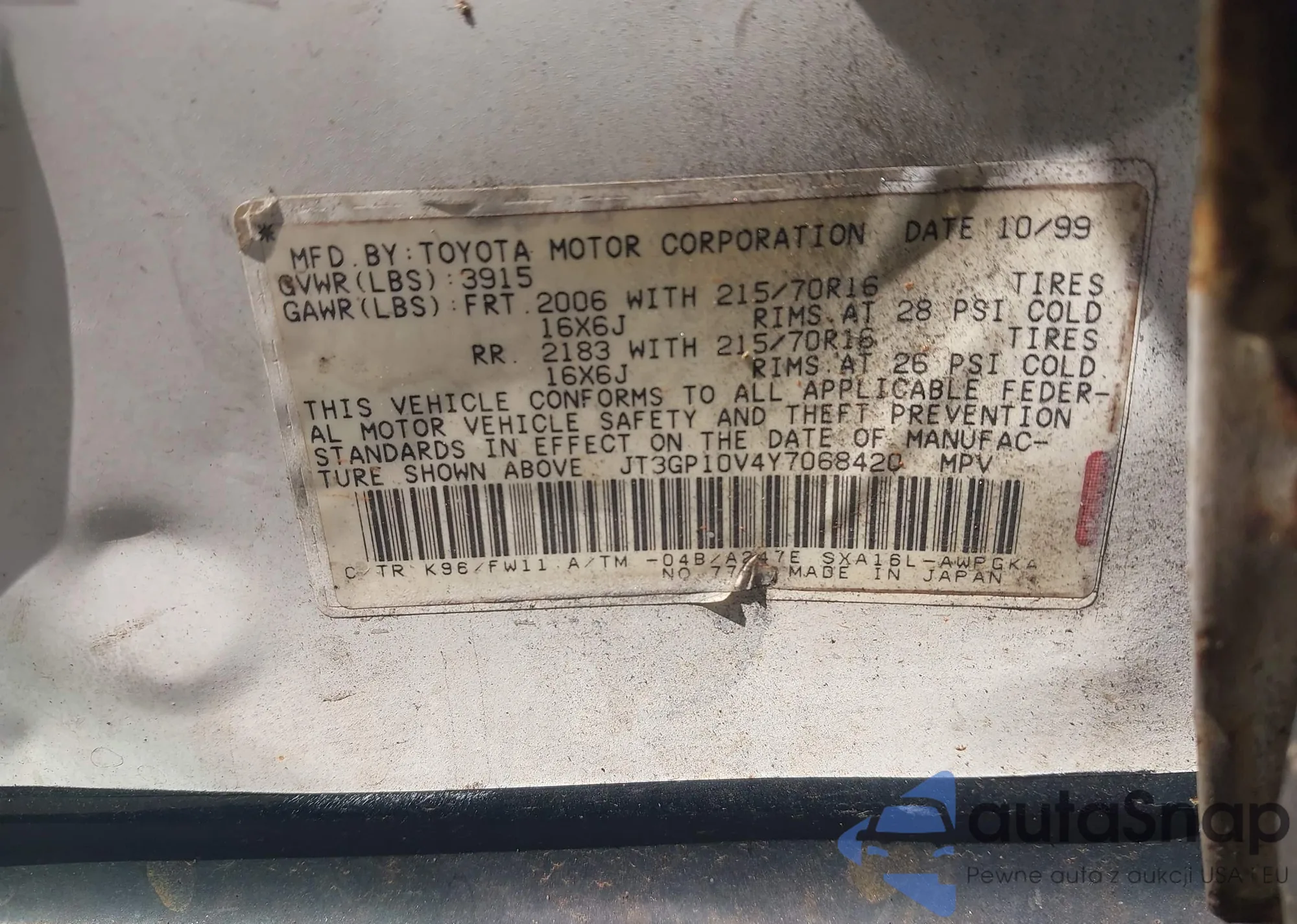 • VIN JT3GP10V4Y7068420