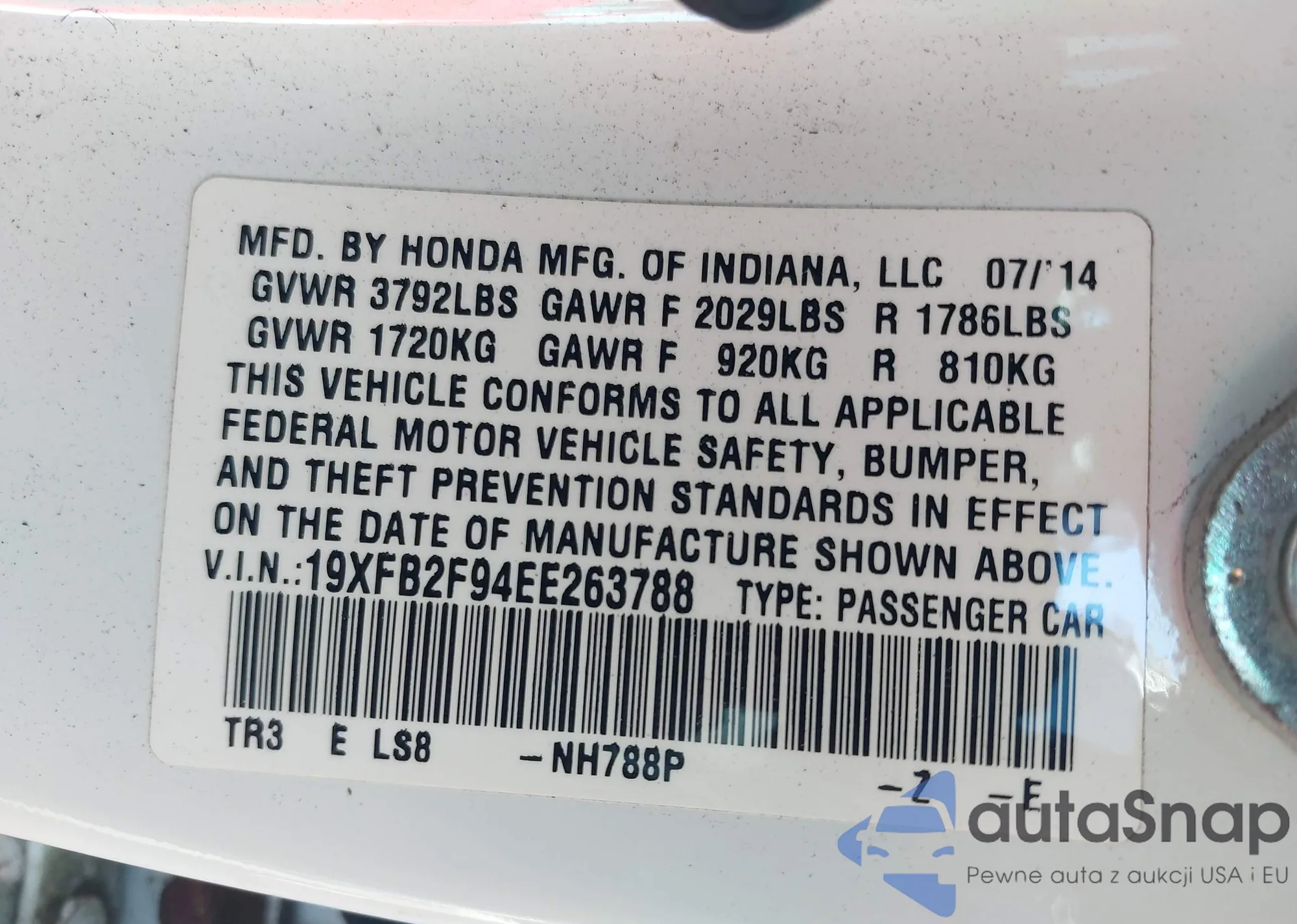 • VIN 19XFB2F94EE263788