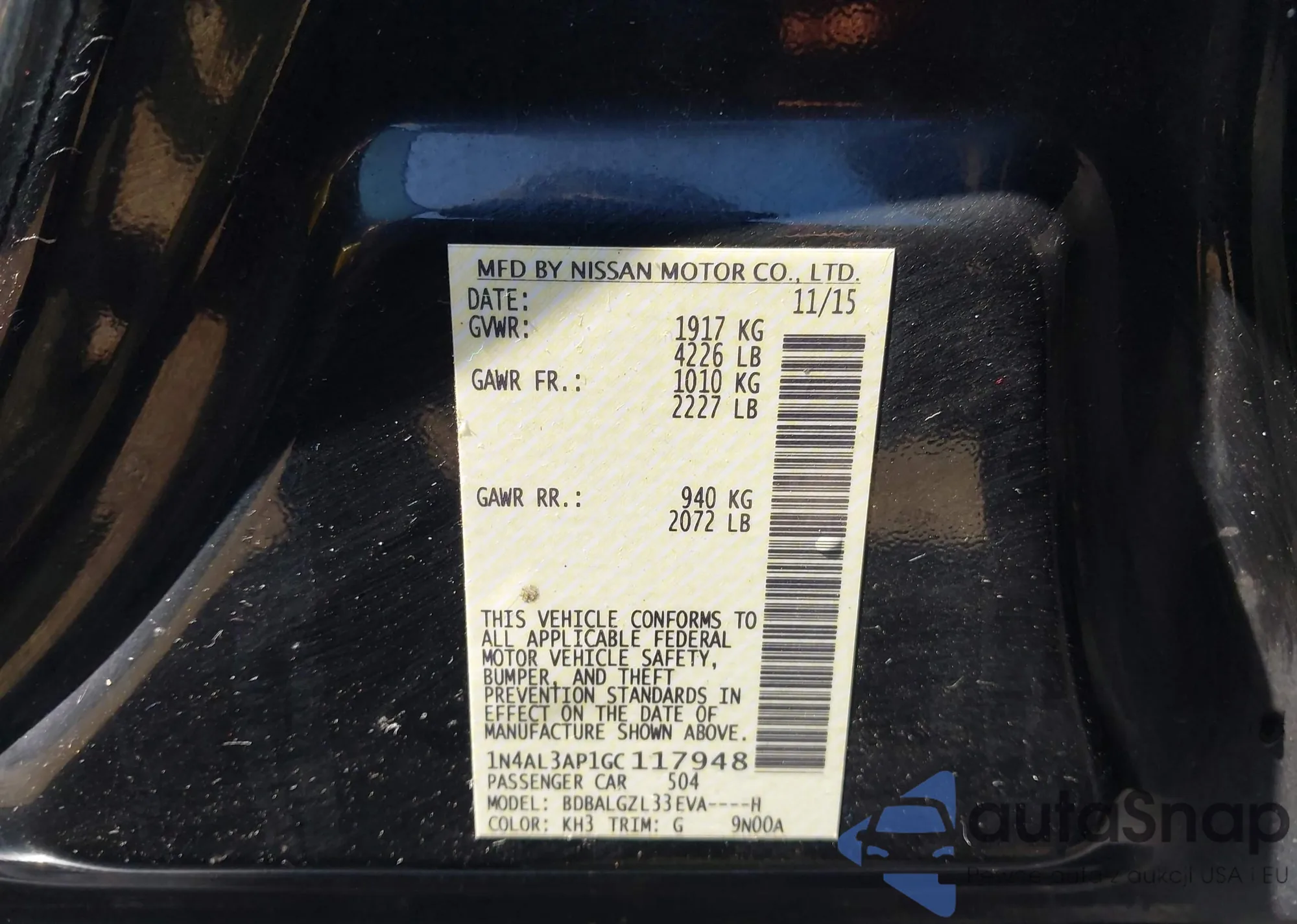 • VIN 1N4AL3AP1GC117948