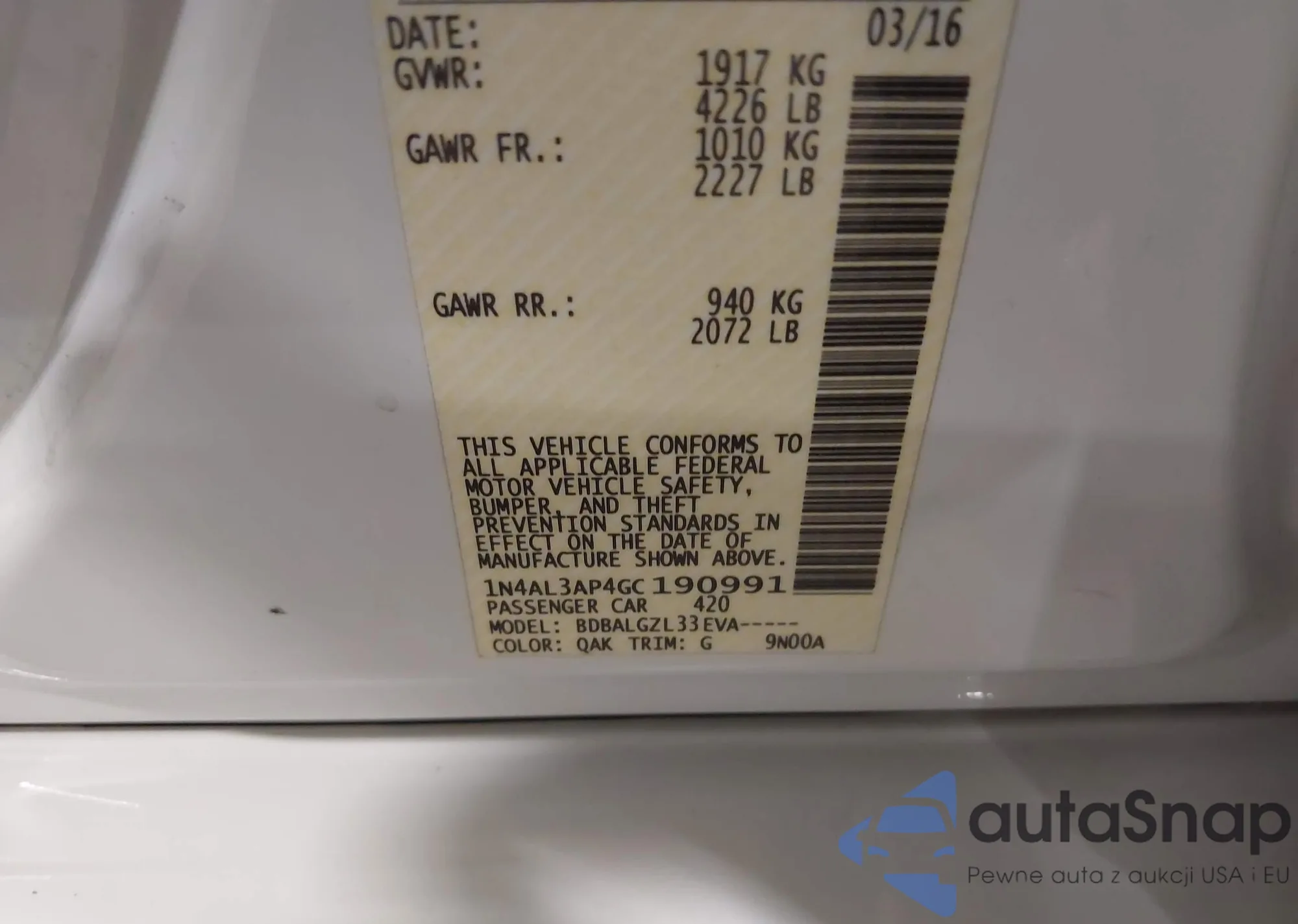 • VIN 1N4AL3AP4GC190991