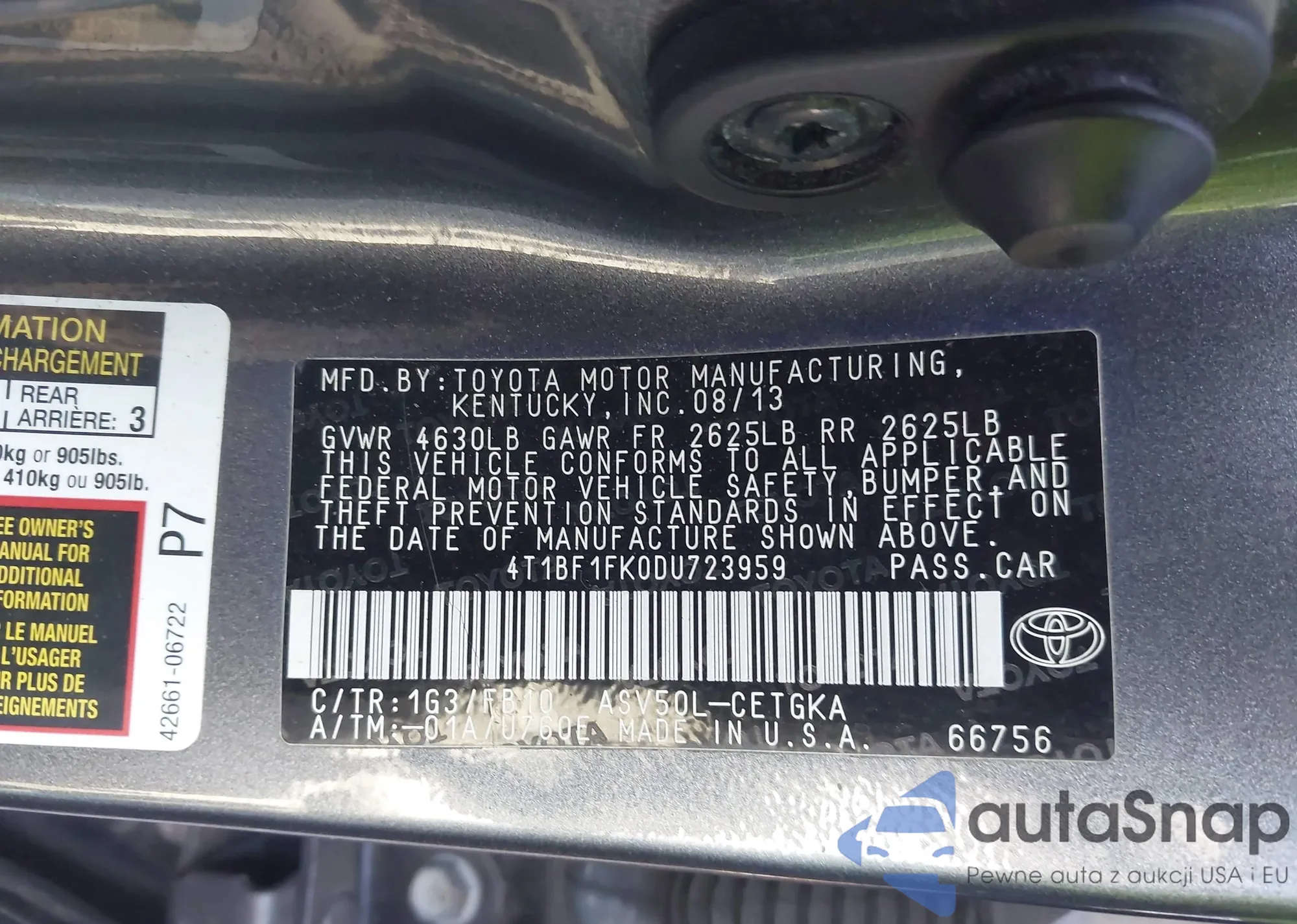LOT: 43226480 VIN: 4T1BF1FK0DU723959