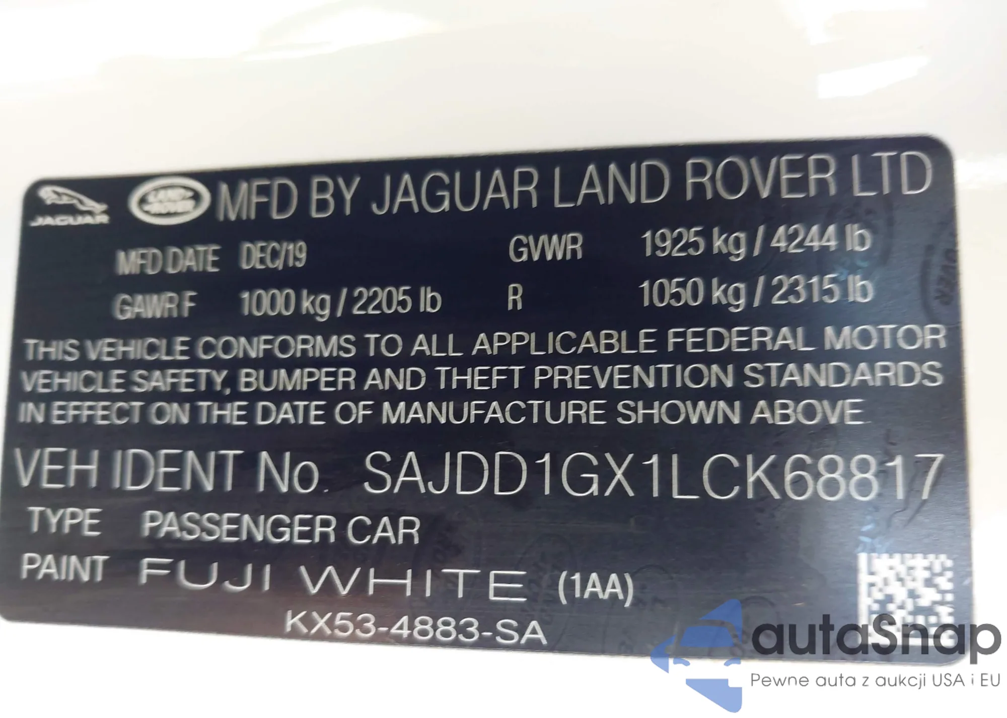 • VIN SAJDD1GX1LCK68817