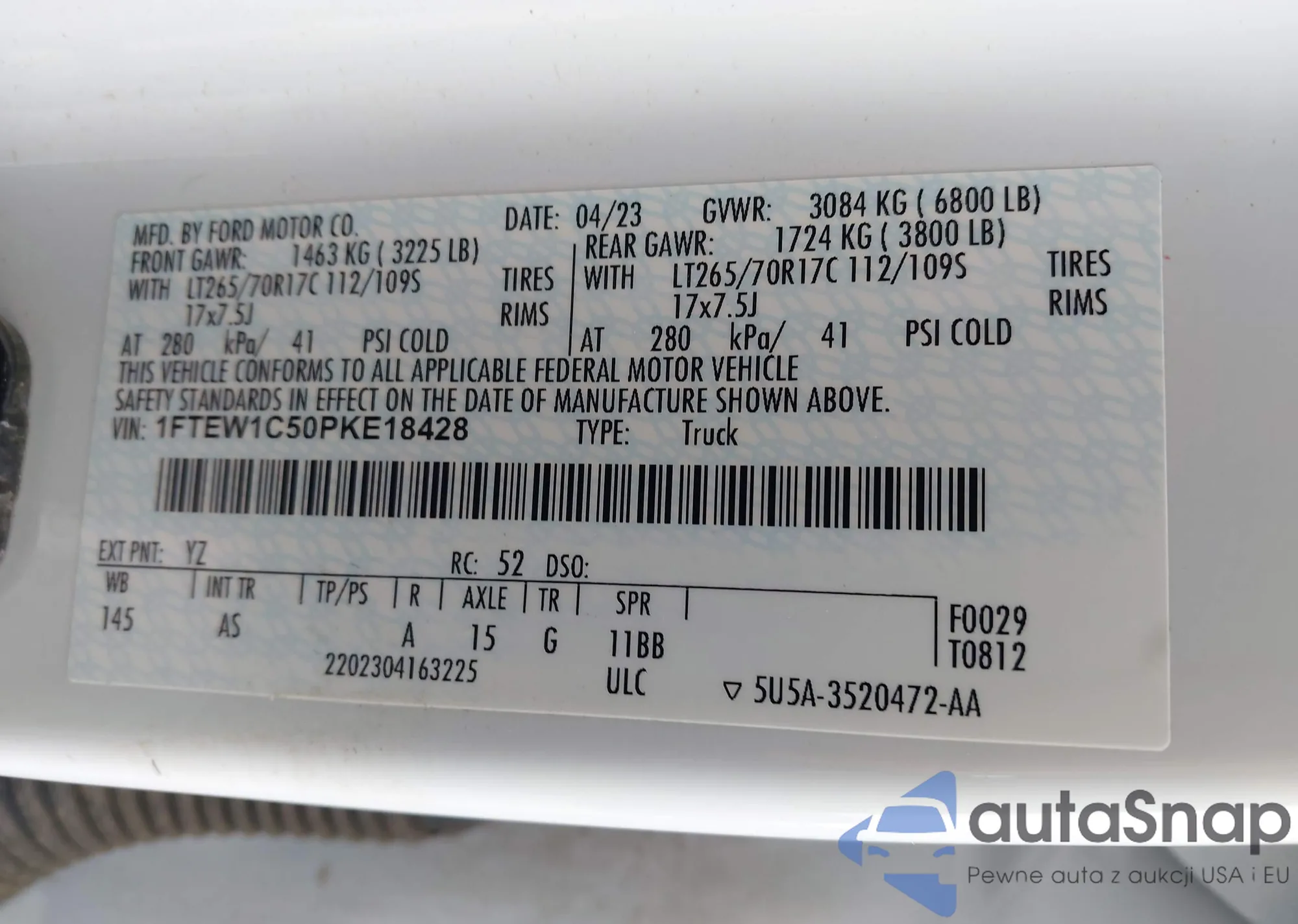 LOT: 42930352 VIN: 1FTEW1C50PKE18428