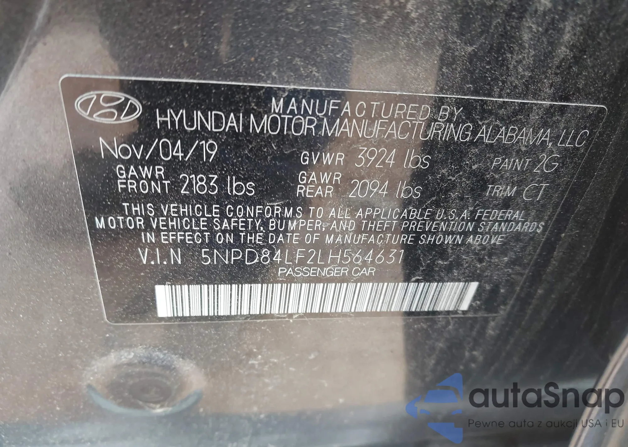• VIN 5NPD84LF2LH564631
