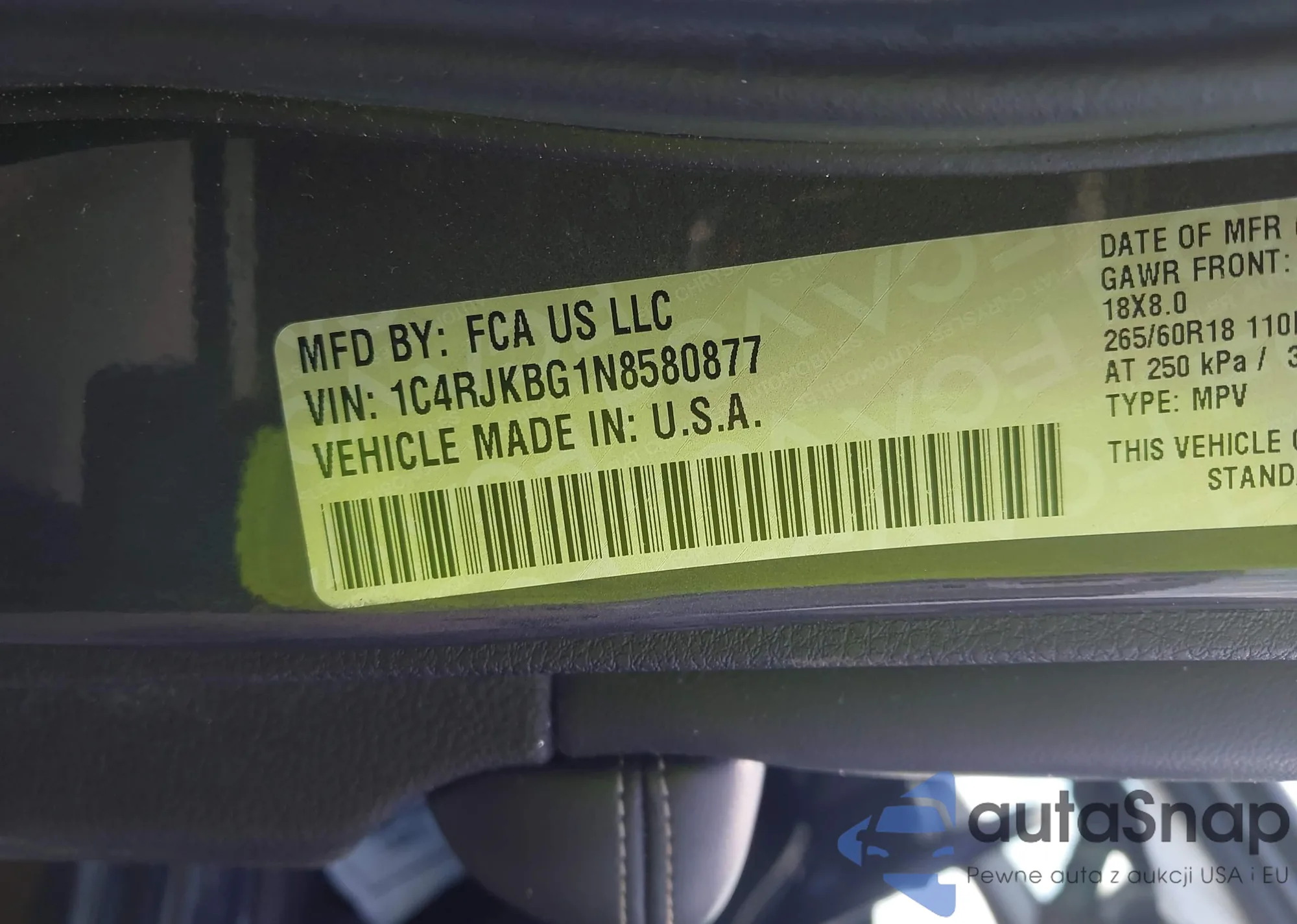• VIN 1C4RJKBG1N8580877