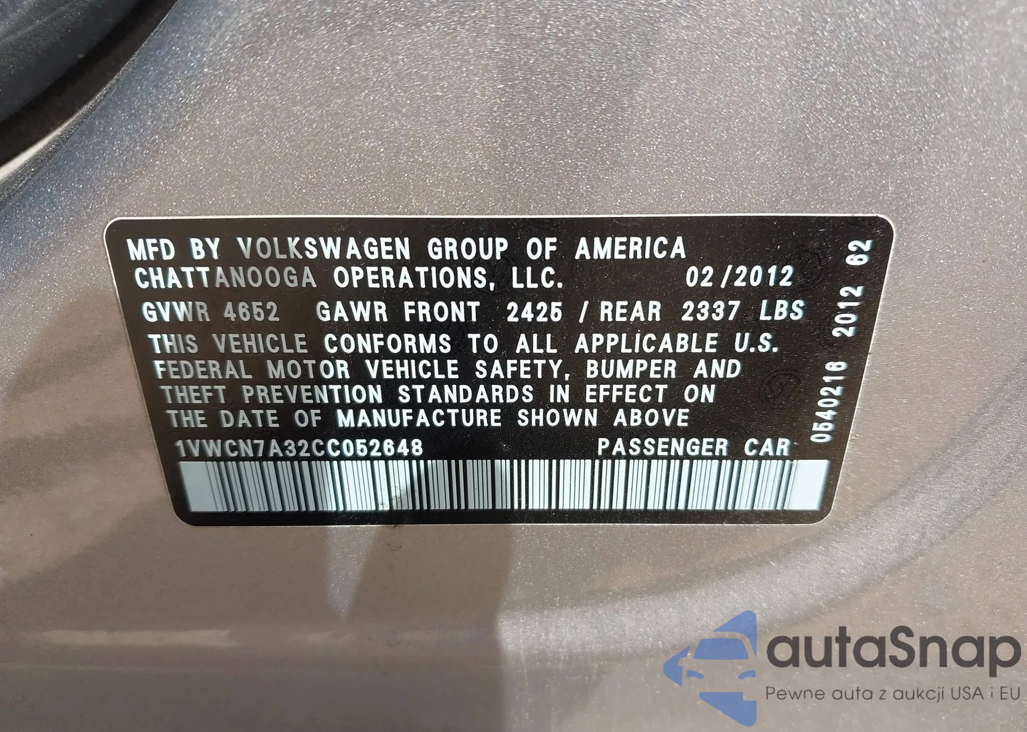 LOT: 43118174 VIN: WDCGG5GB1CF868096