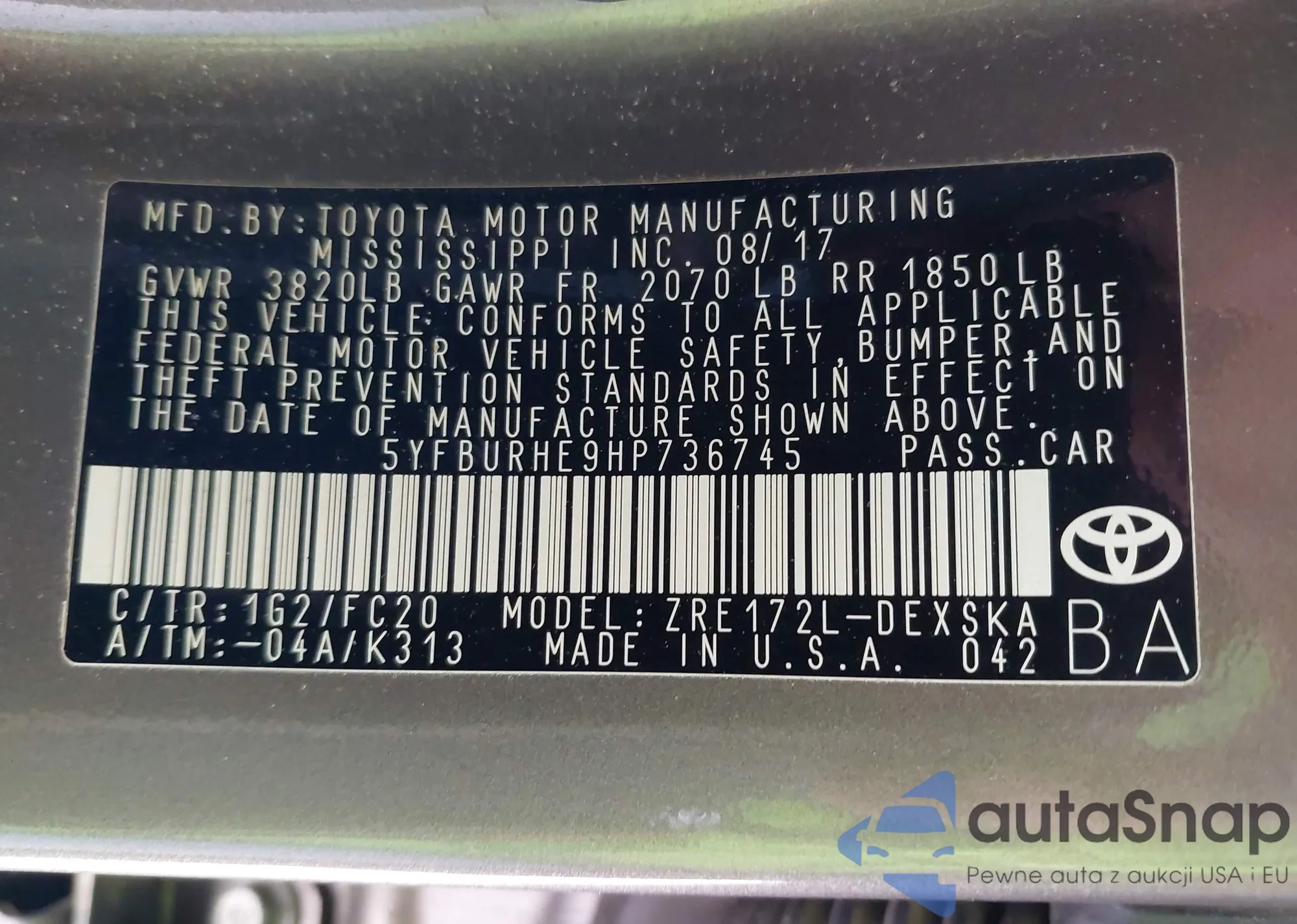 LOT: 43215614 VIN: 5YFBURHE9HP736745
