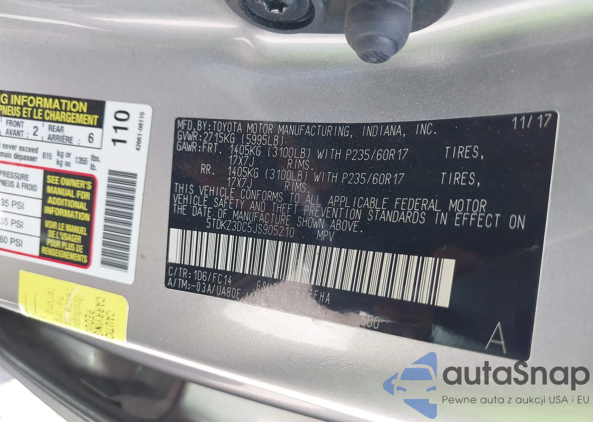 • VIN 4T1B11HK5JU026939