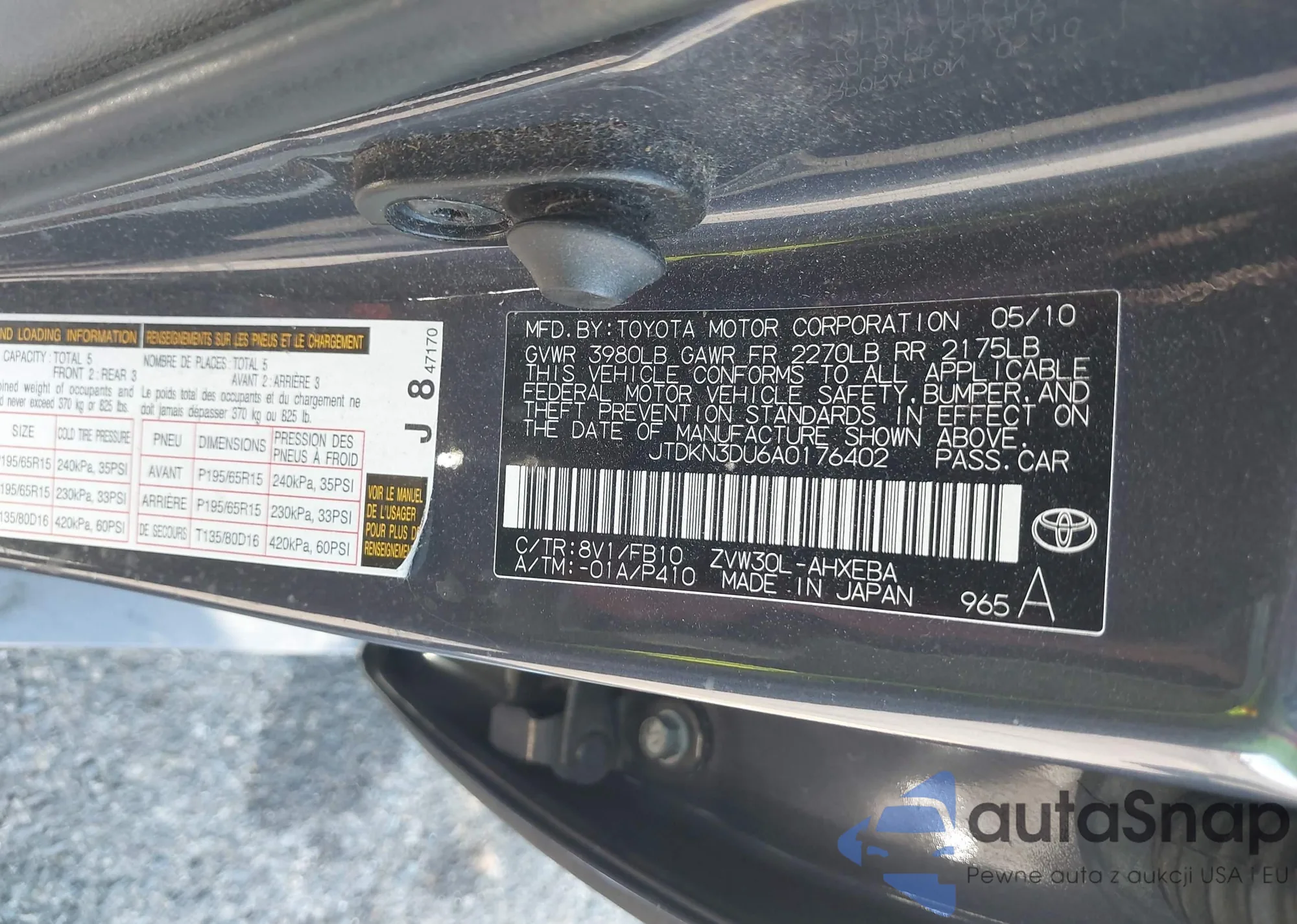LOT: 43228702 VIN: JTDJT923885163324