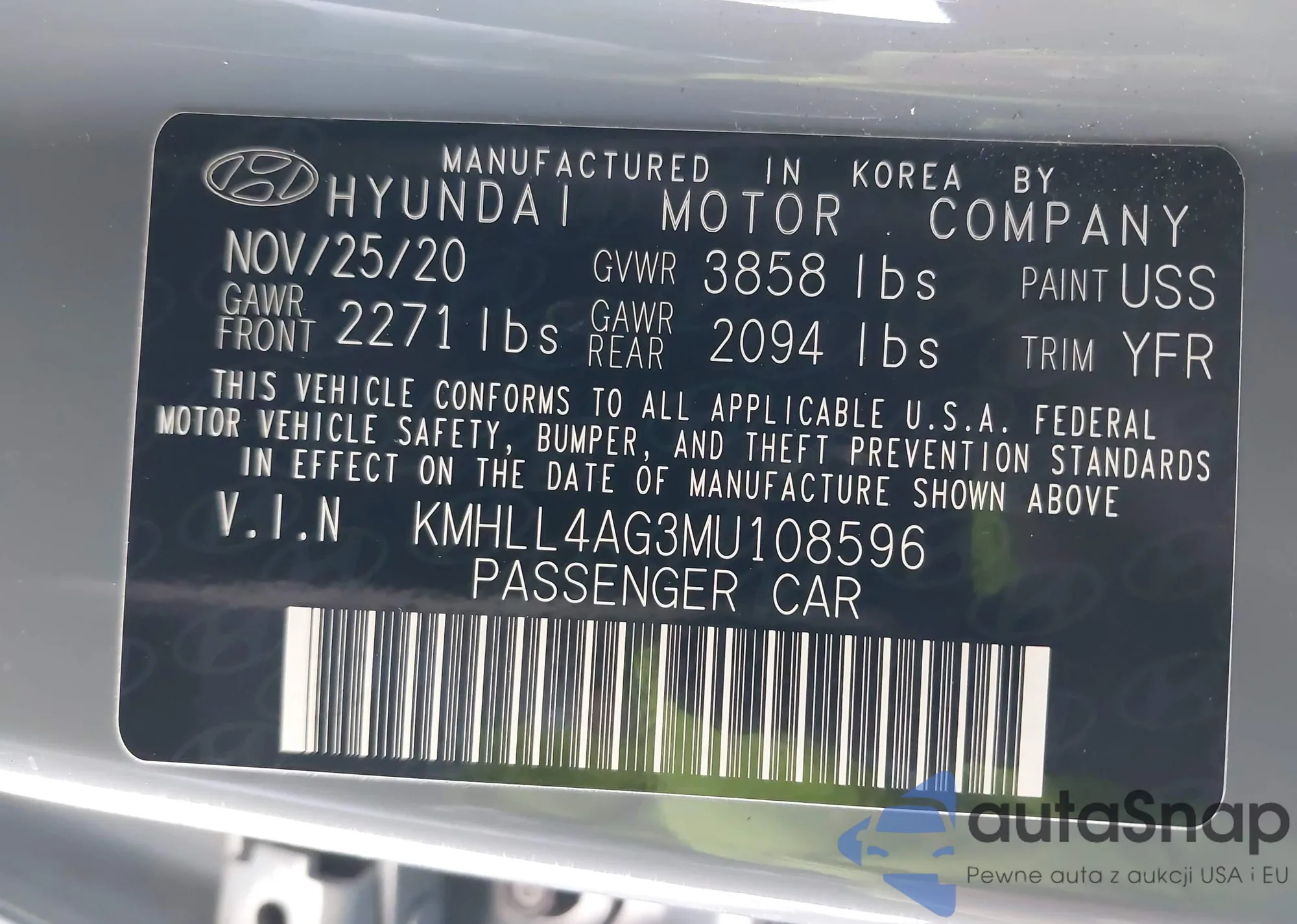 LOT: 42867083 VIN: KMHLL4AG3MU108596