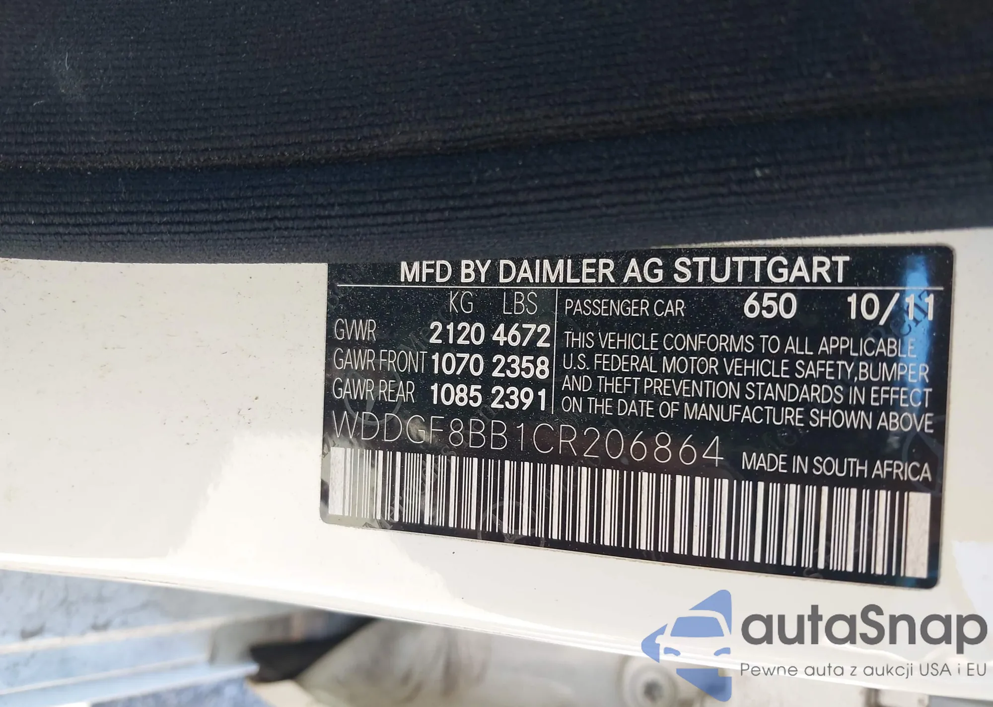 LOT: 43164536 VIN: WDDGF8BB1CR206864