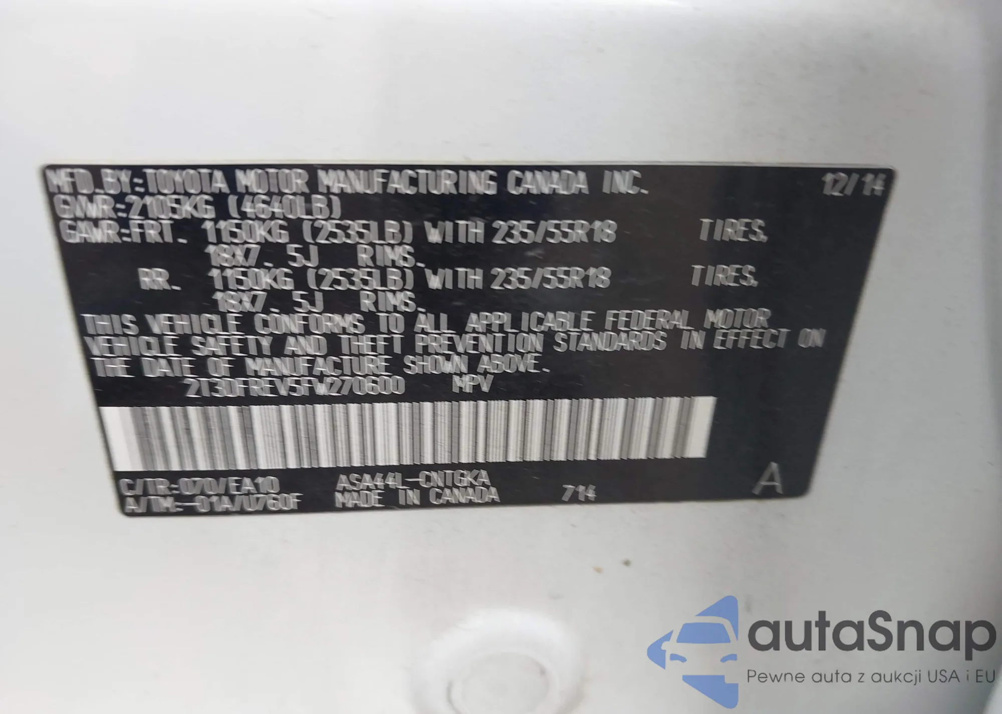 • VIN 2T3DFREV5FW270600