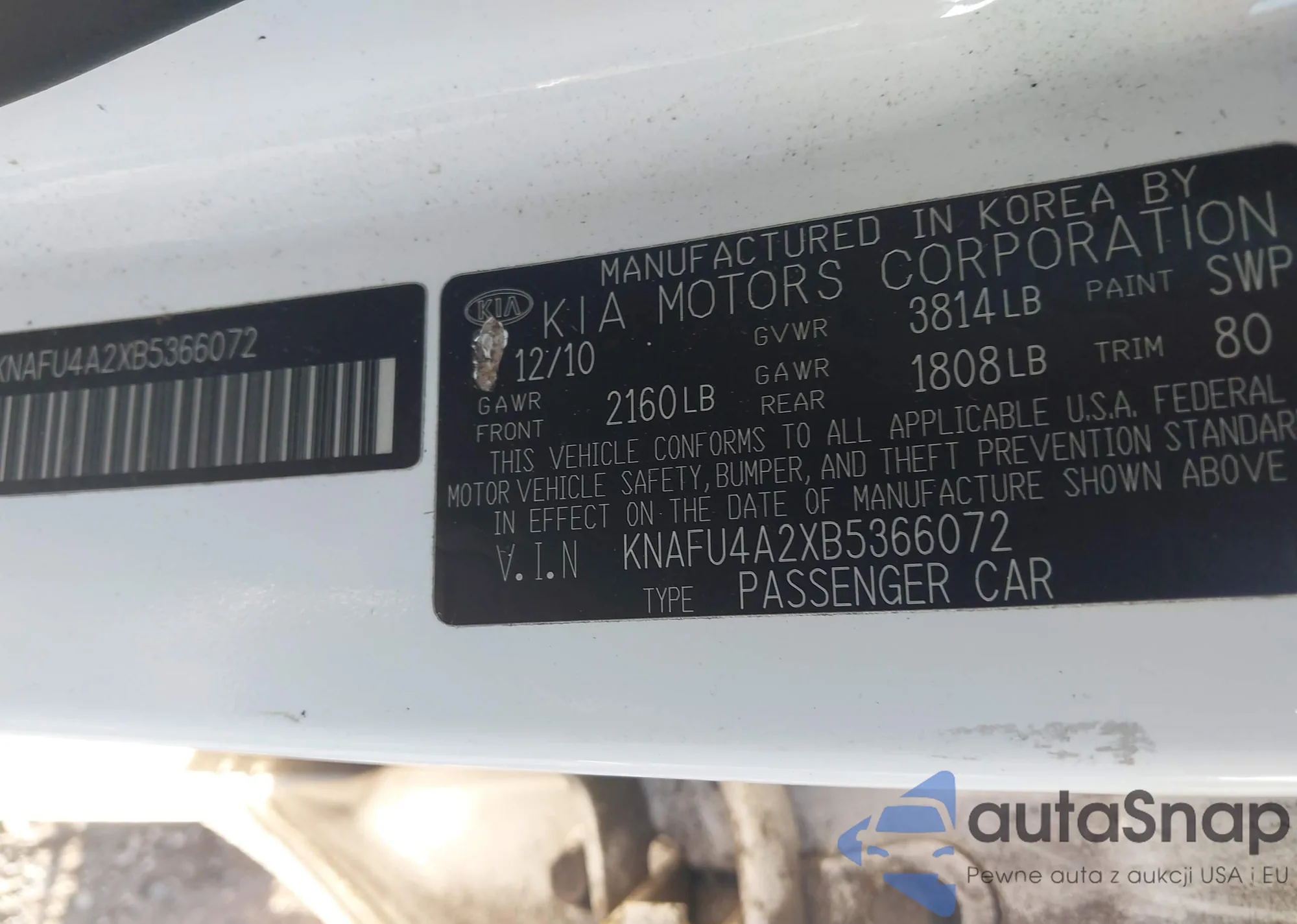 • VIN 5UXZV4C51D0B11476