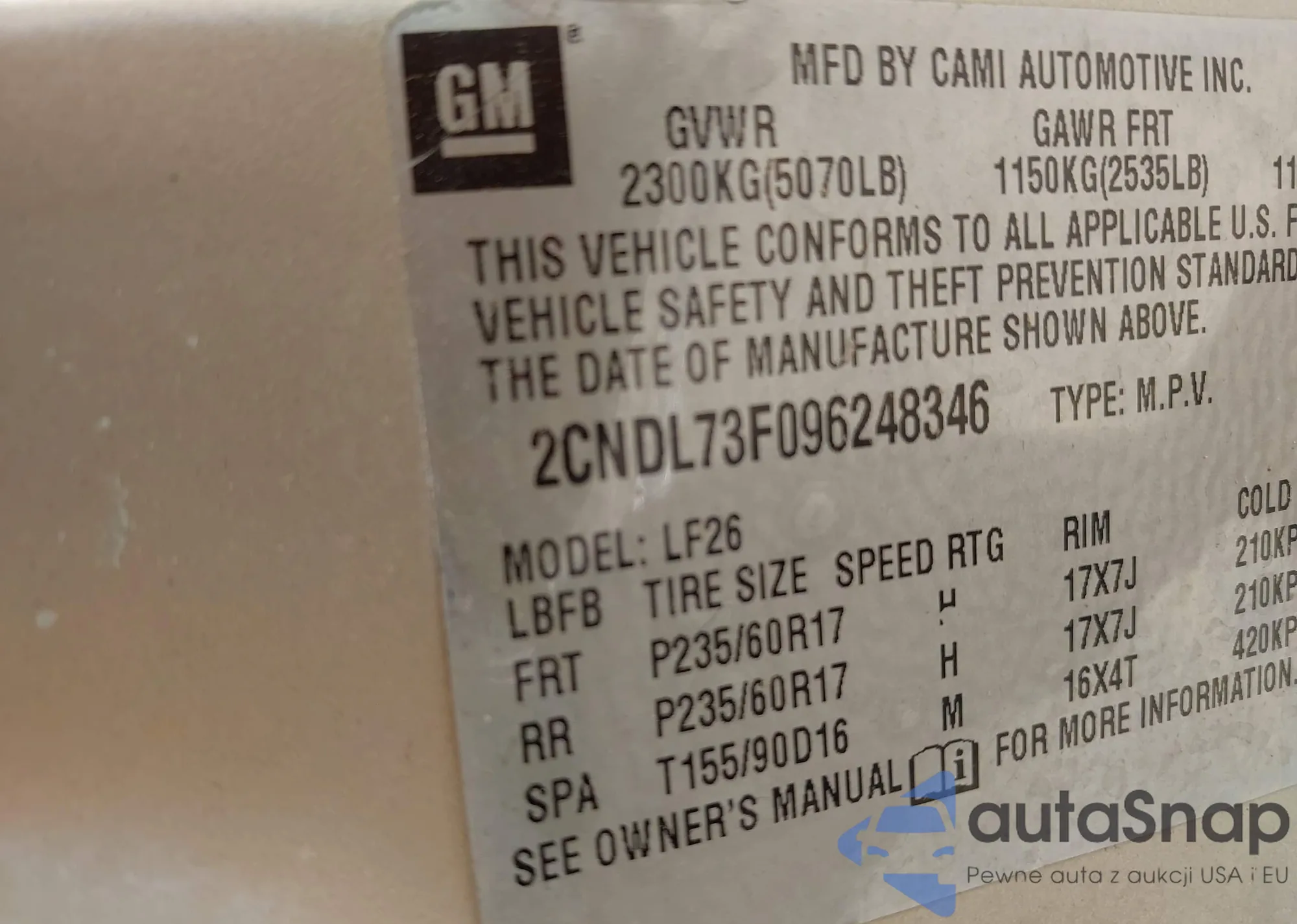 LOT: 42726301 VIN: 3TYRX5GN8MT017055