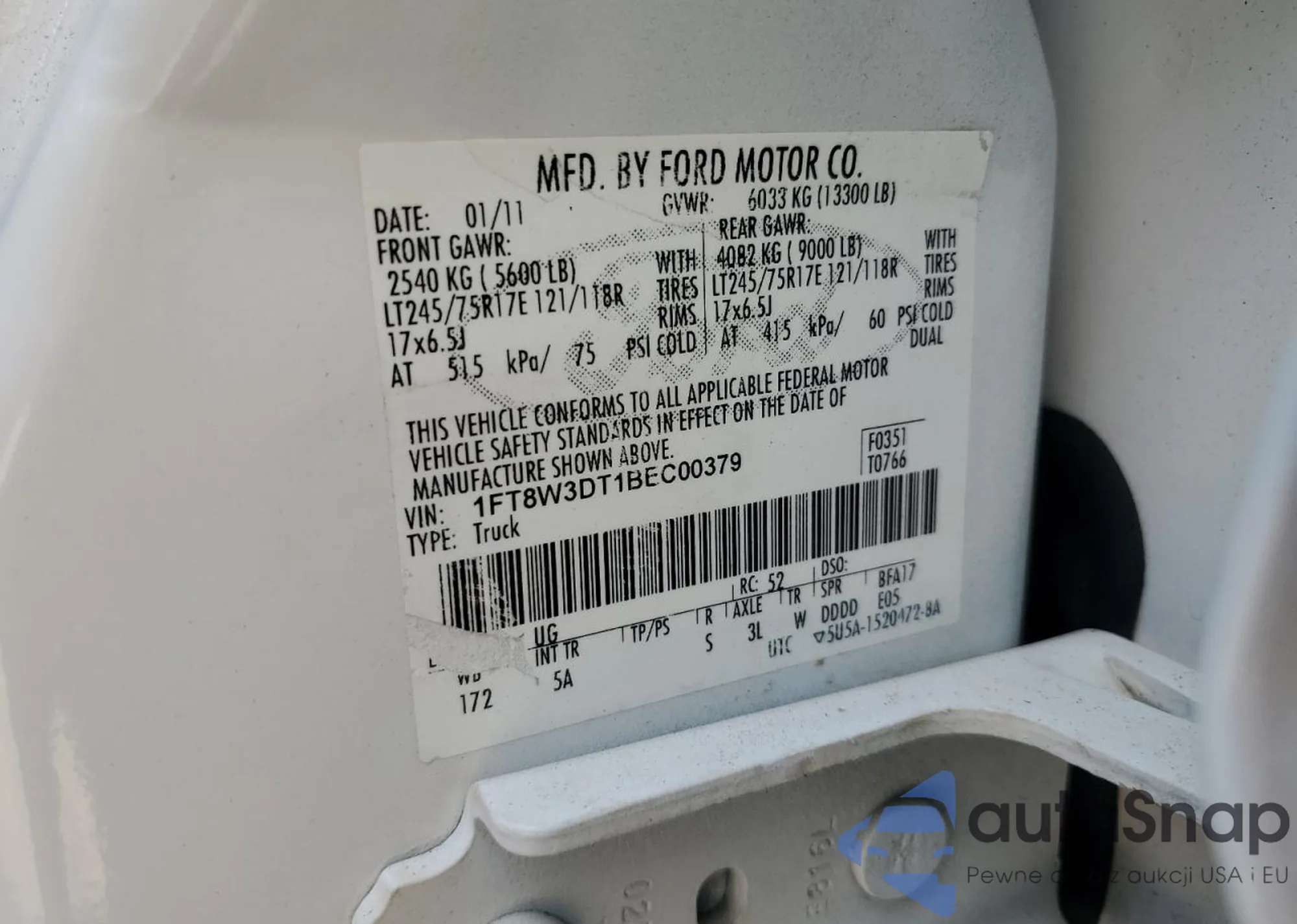 • VIN 1FT8W3DT1BEC00379