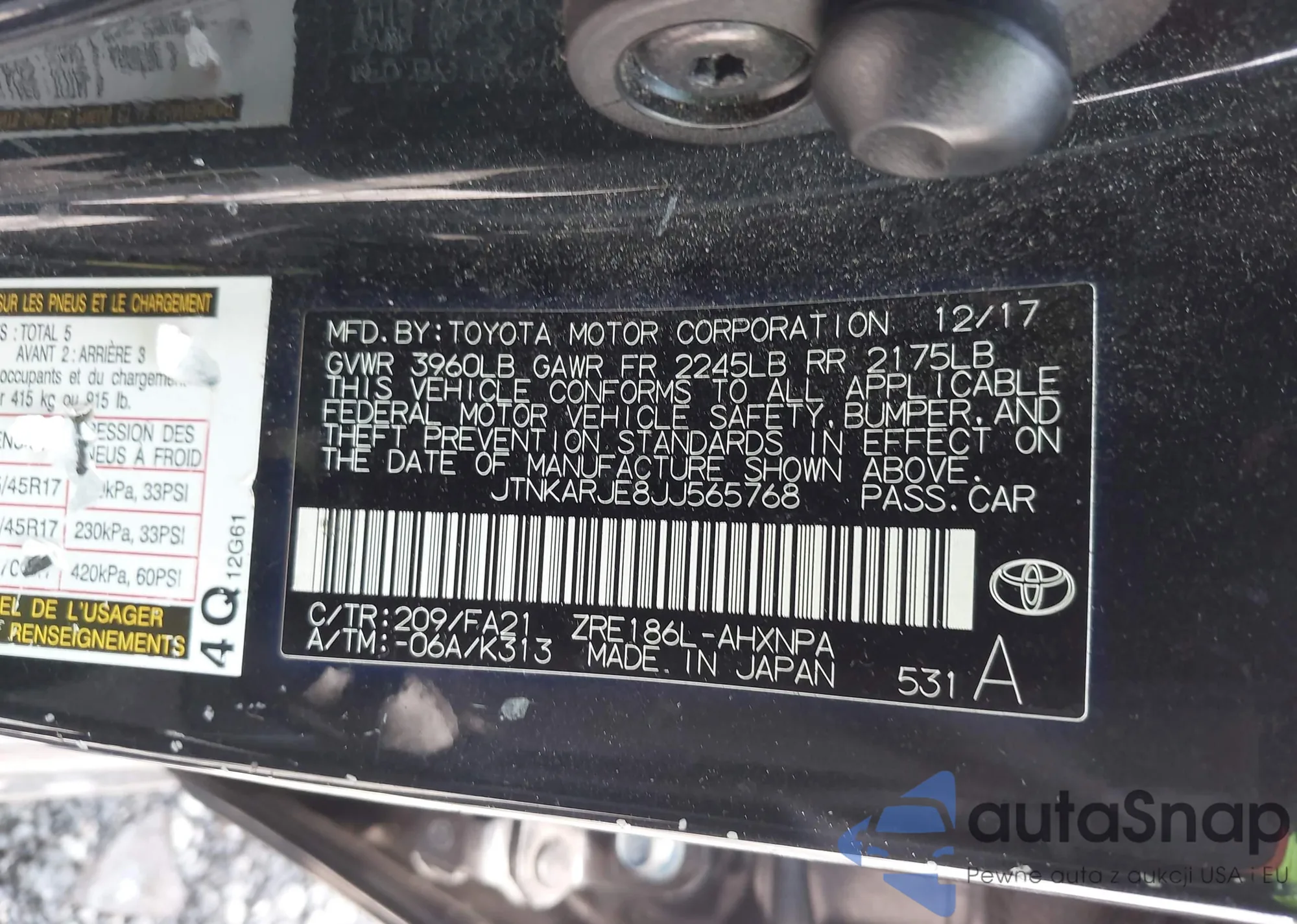 LOT: 42814268 VIN: JTNKARJE8JJ565768