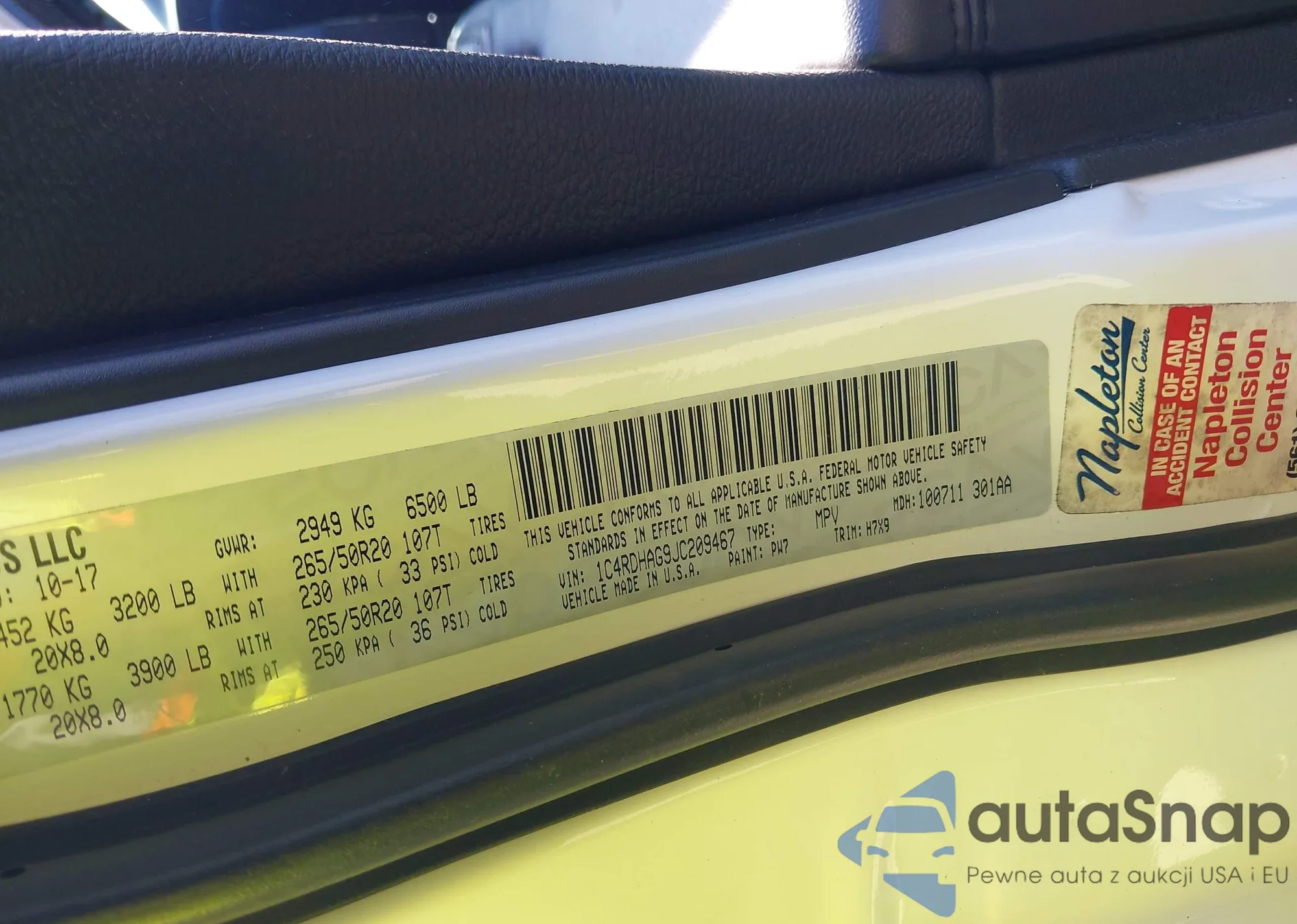 LOT: 42839535 VIN: 1C4RJFCG8HC646154