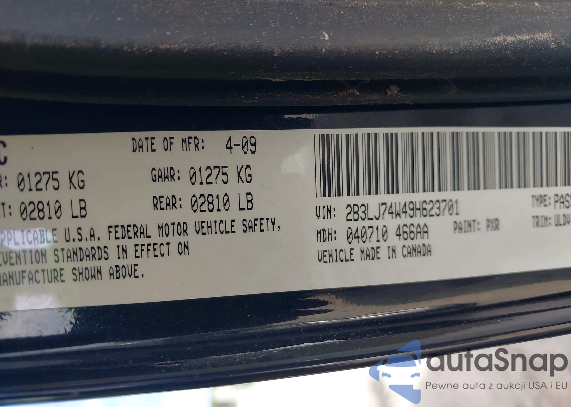 • VIN 2B3LJ74W49H623701