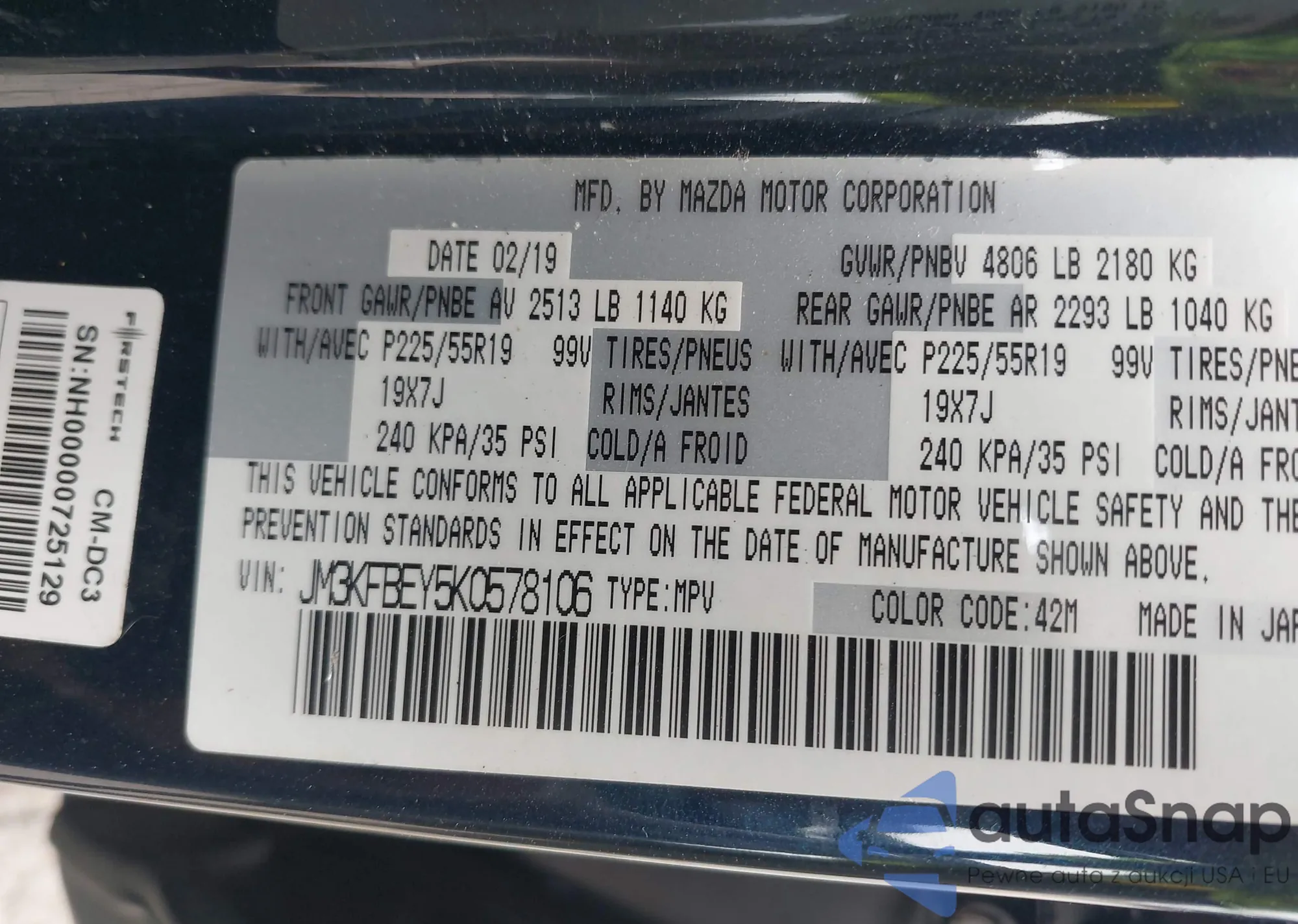 • VIN JM3KFBEY5K0578106