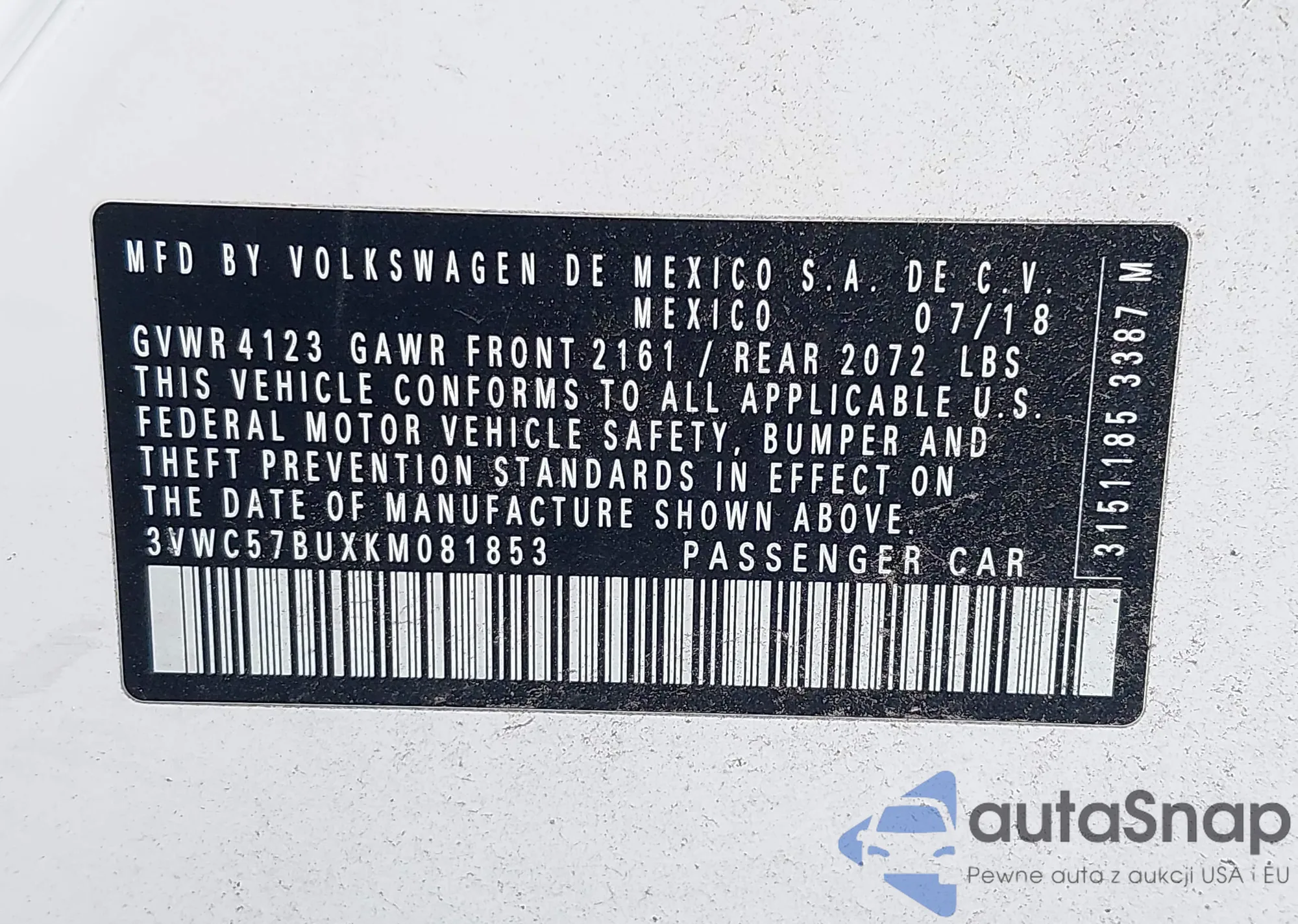 • VIN 3VWC57BUXKM081853