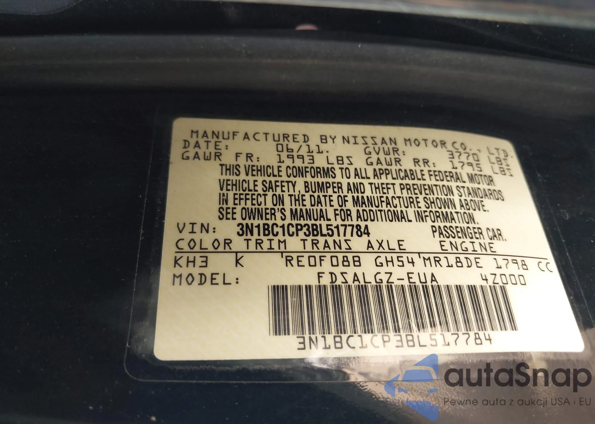 • VIN 3N1BC1CP3BL517784