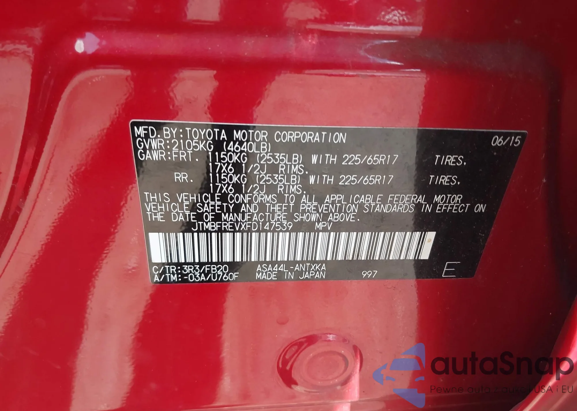 • VIN JTMBFREVXFD147539