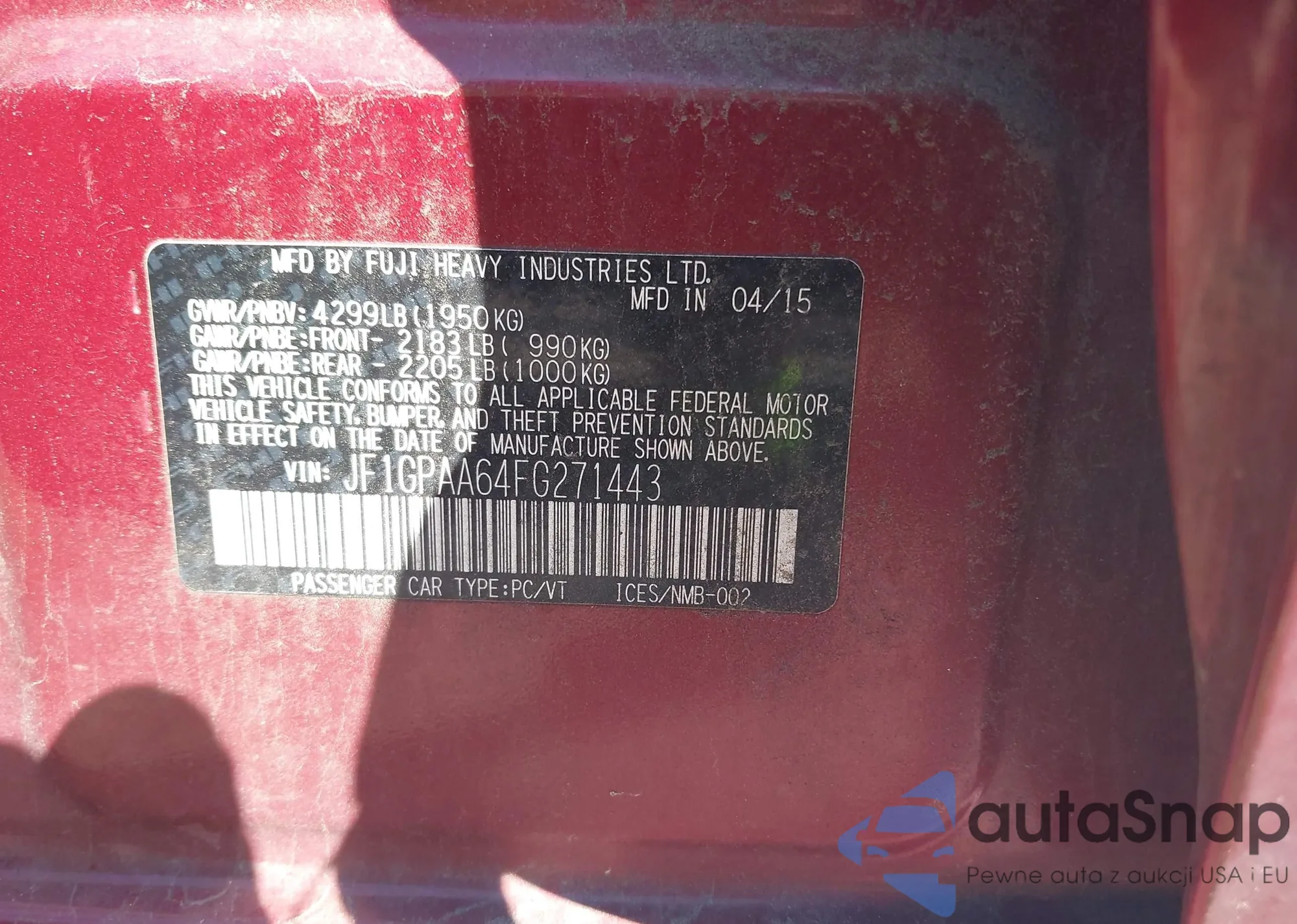 LOT: 43162287 VIN: JF1GPAA64FG271443
