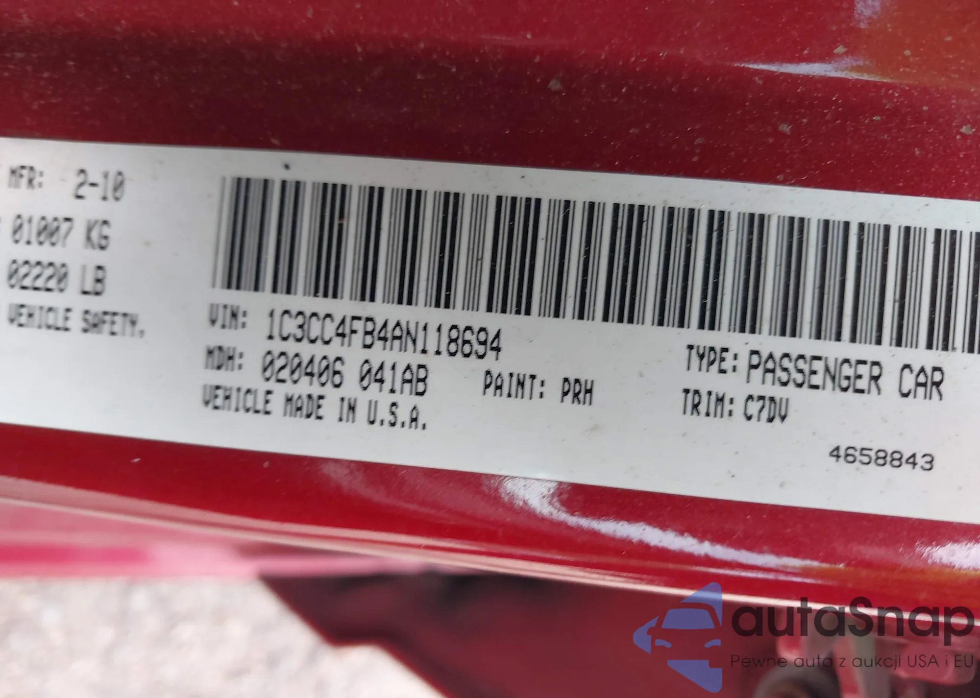 LOT: 43166131 VIN: 1C3CC4FB4AN118694