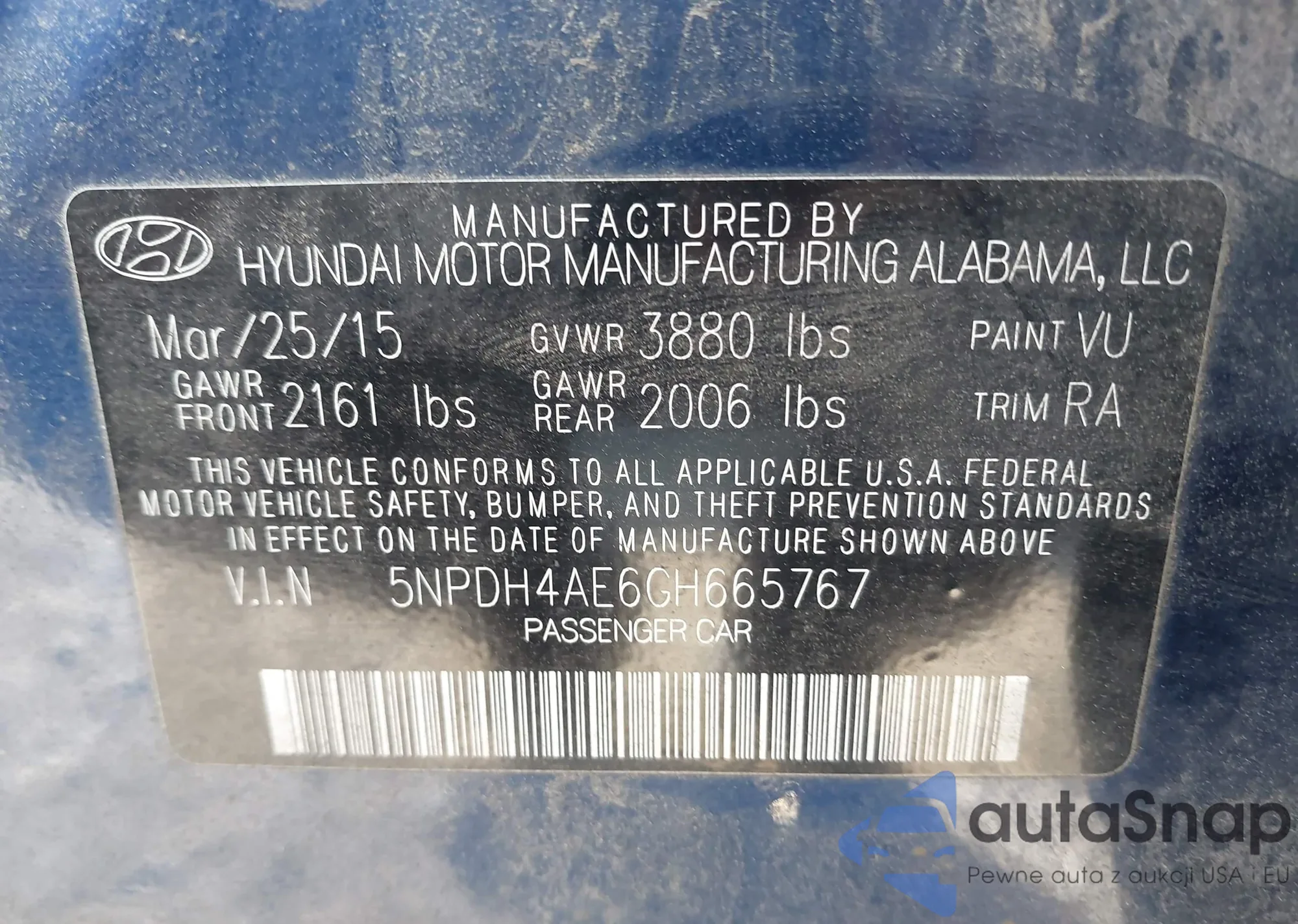 • VIN 5NPDH4AE6GH665767