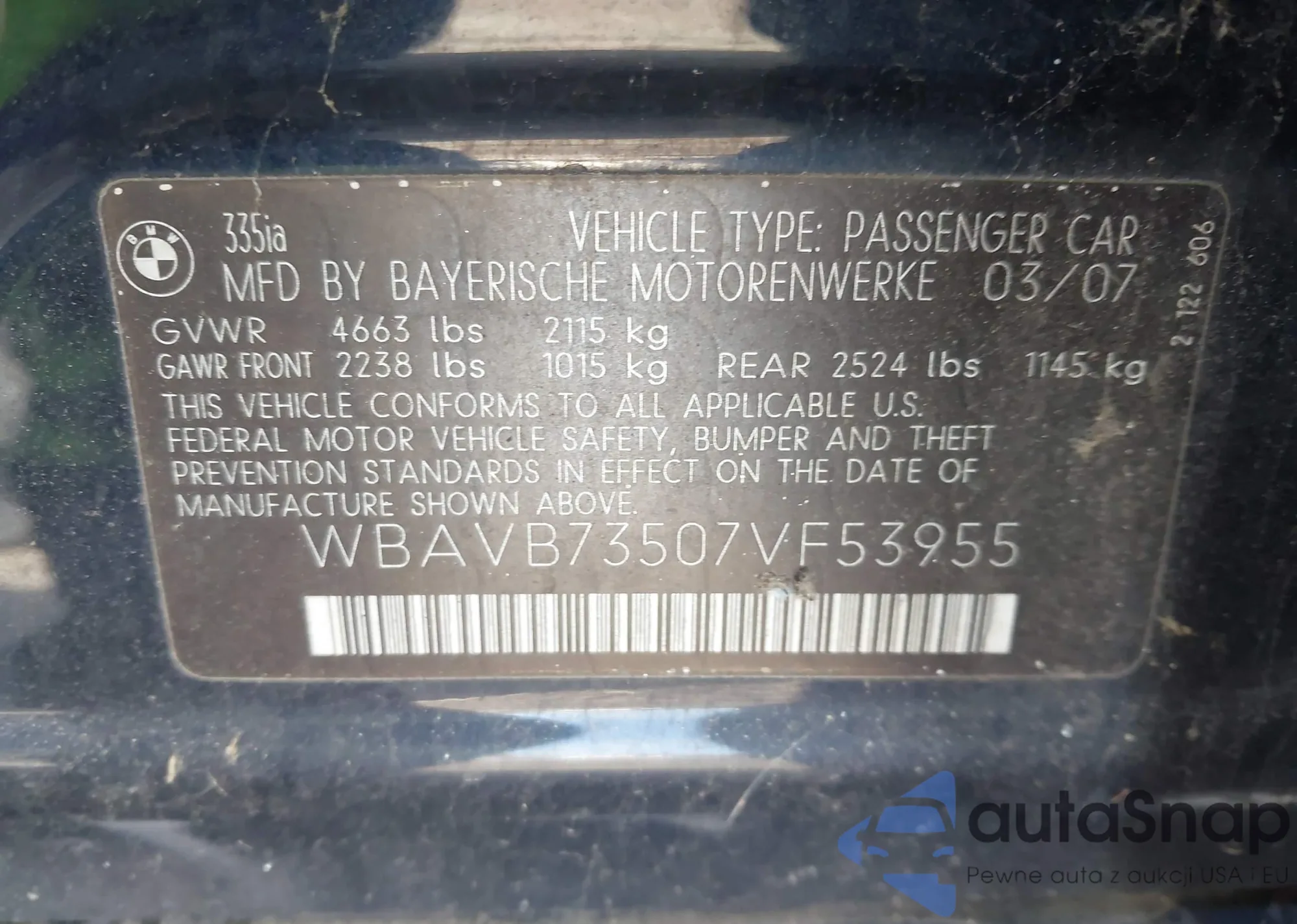 • VIN WBAVB73507VF53955