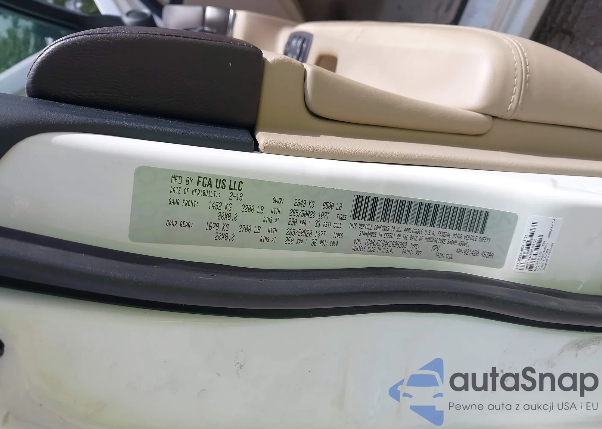 LOT: 42932110 VIN: 1C4RJECG4KC699399